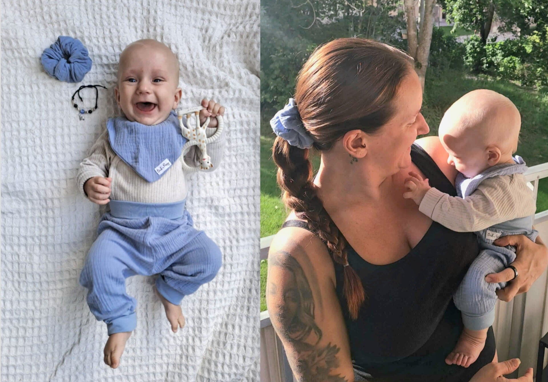 "Väldigt fina och mysiga kläder. Lillkillen var superfin i sina ljusblåa byxor och mössa med gulliga små djur på. Dessutom var det så himla kul att få matcha med honom med en liten shrunchie till håret." - Emma G.