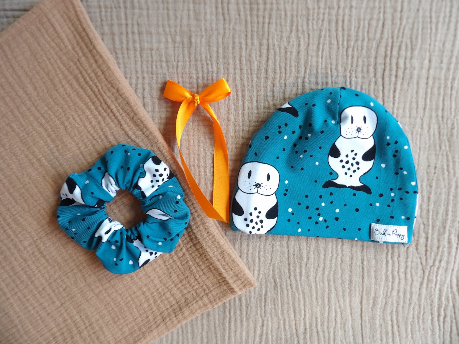 💛 Each BB hat comes with a matching accessory for the parent in the same fabric – a scrunchie or a Bud'n Poppy pendant/keychain. A symbol of the bond between little and big, to be worn even when the baby has outgrown their first hat.