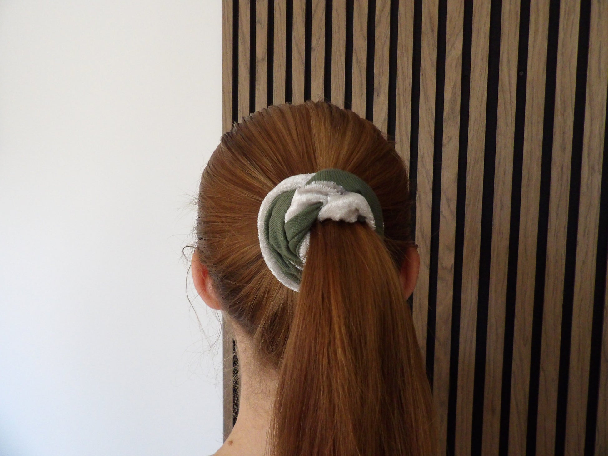 🎀 A scrunchie for an adult that matches the baby's clothes. The accessory for the adult becomes a symbol to wear even as the baby grows, a reminder of the bond between you.