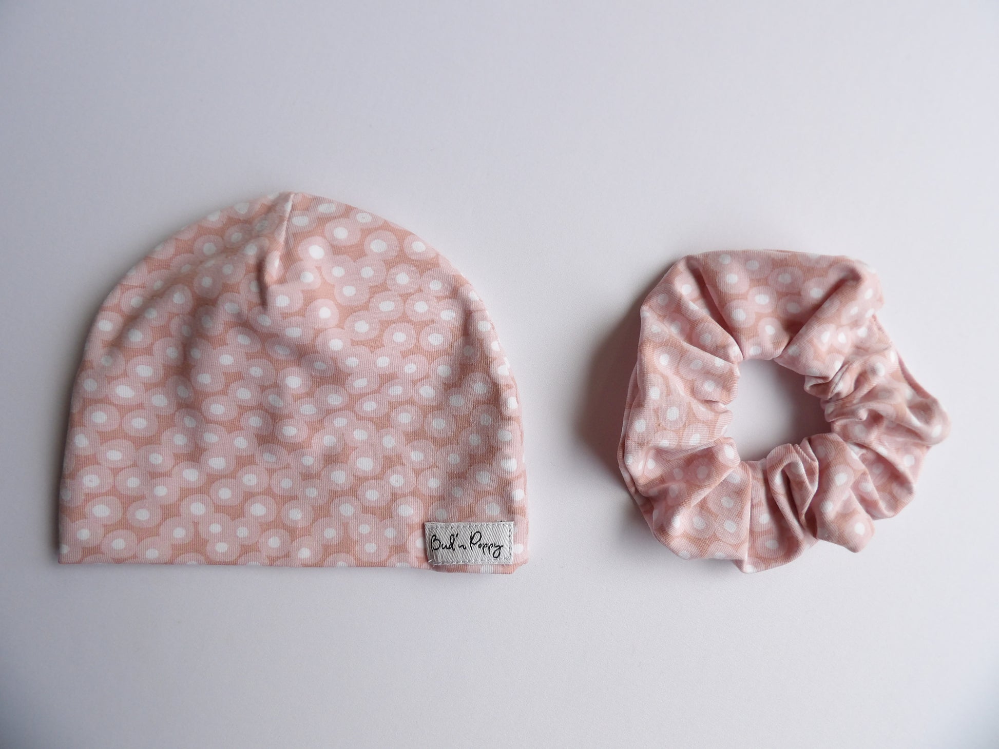 - A matching scrunchie for adults in the same soft jersey fabric as the baby clothes.
