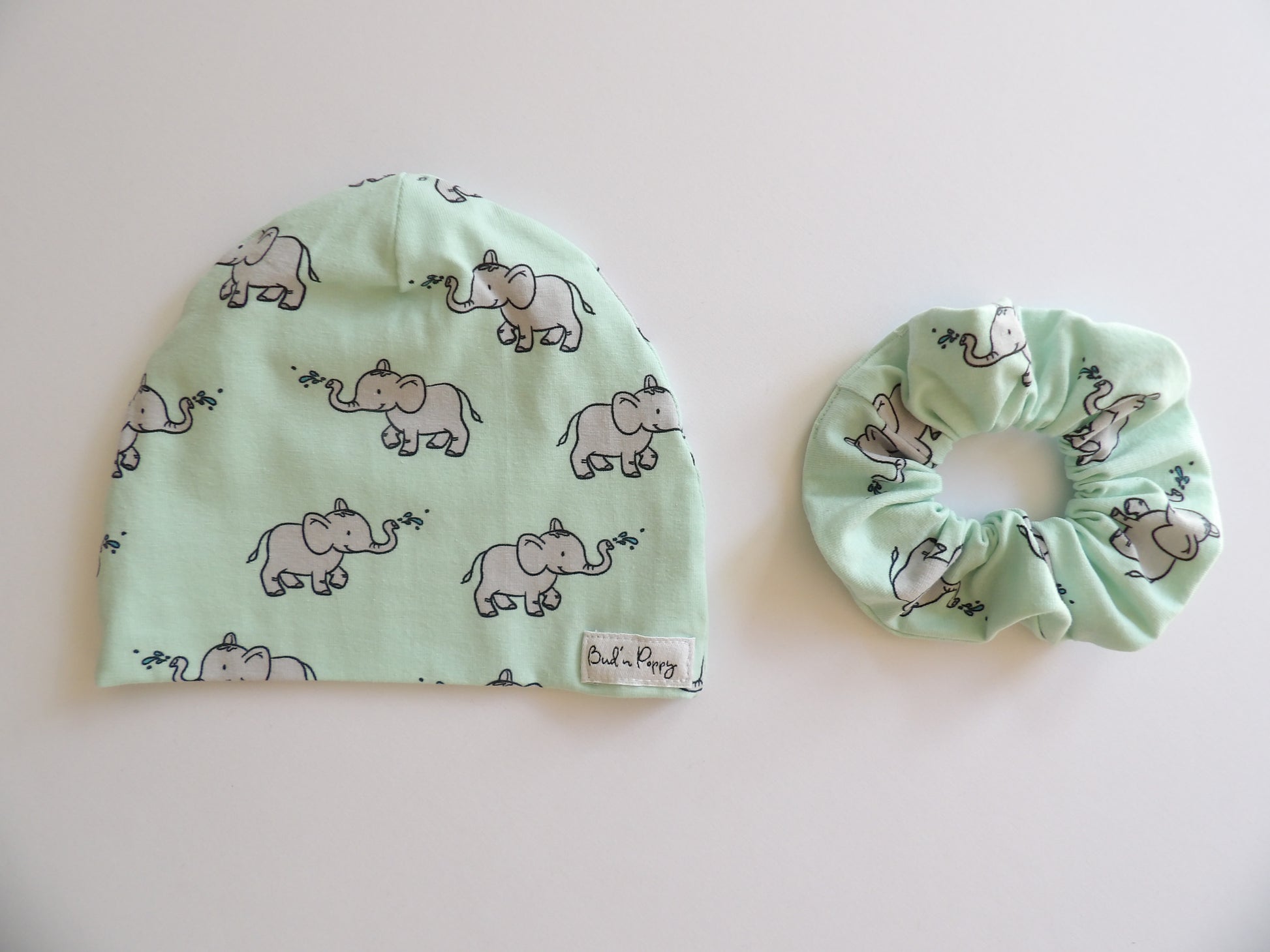 - A matching scrunchie for adults in the same soft jersey fabric as the baby clothes.