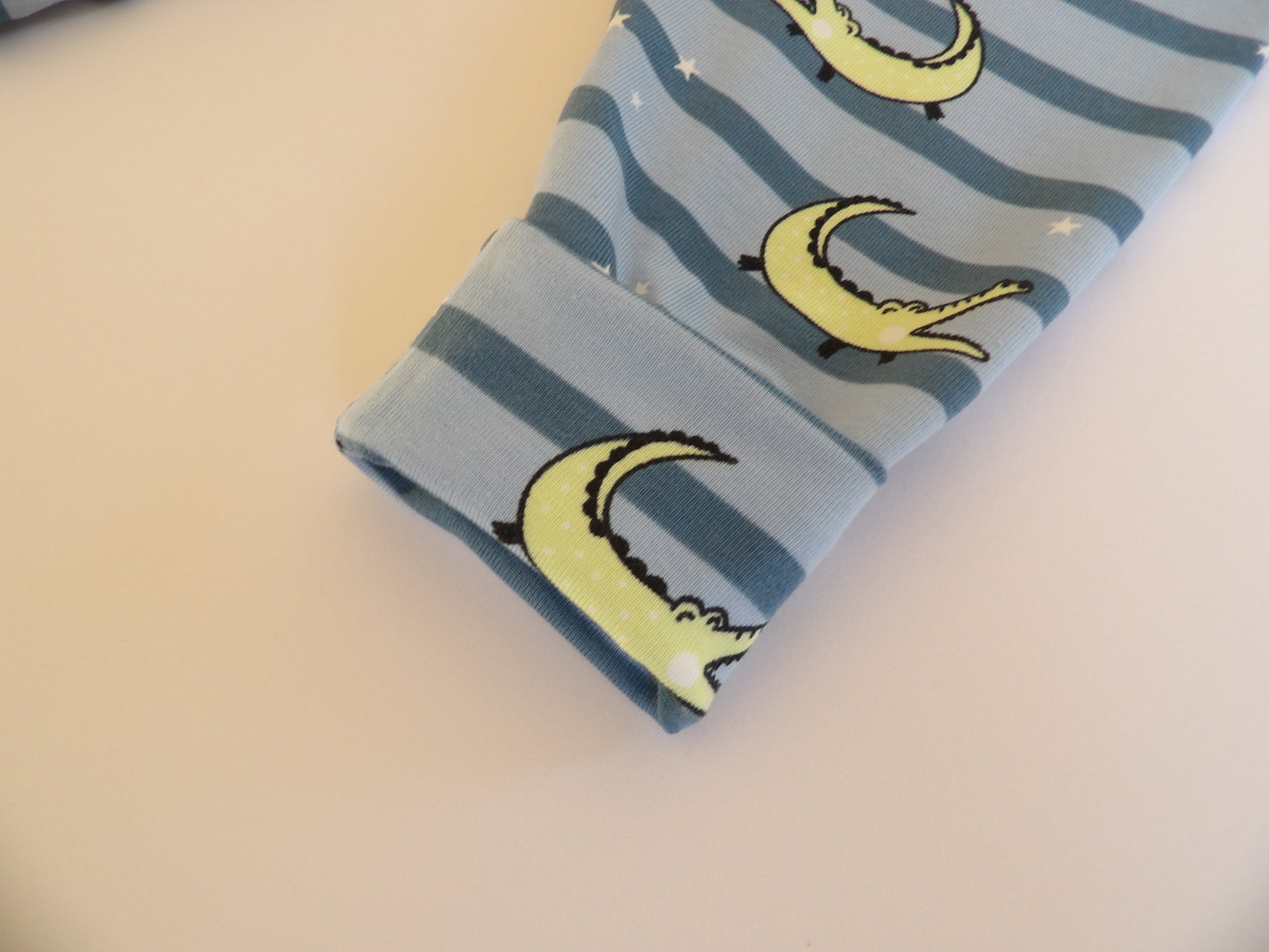 There are only a maximum of a few baby sets in each fabric and no two sets are exactly alike. Even in the few sets that are sewn in the same fabric, the details differ. The handmade bracelets are always made and matched specifically for their set. This makes each set unique, personal, genuine and impossible to mass produce, just like the relationship it symbolizes.