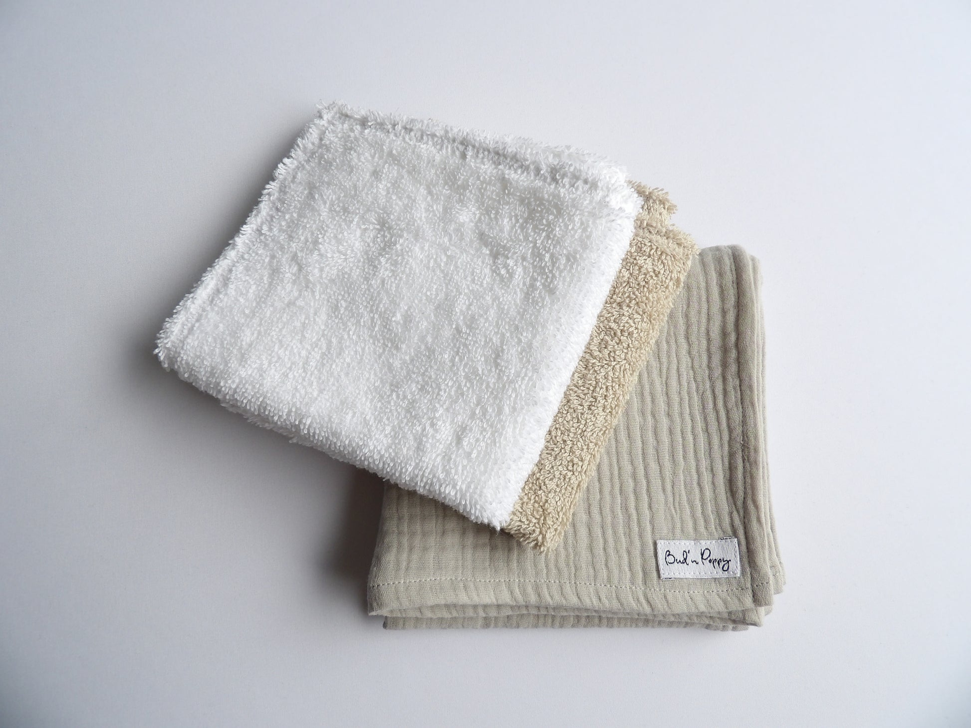 - 🛁 Two washcloths in classic terry cloth.