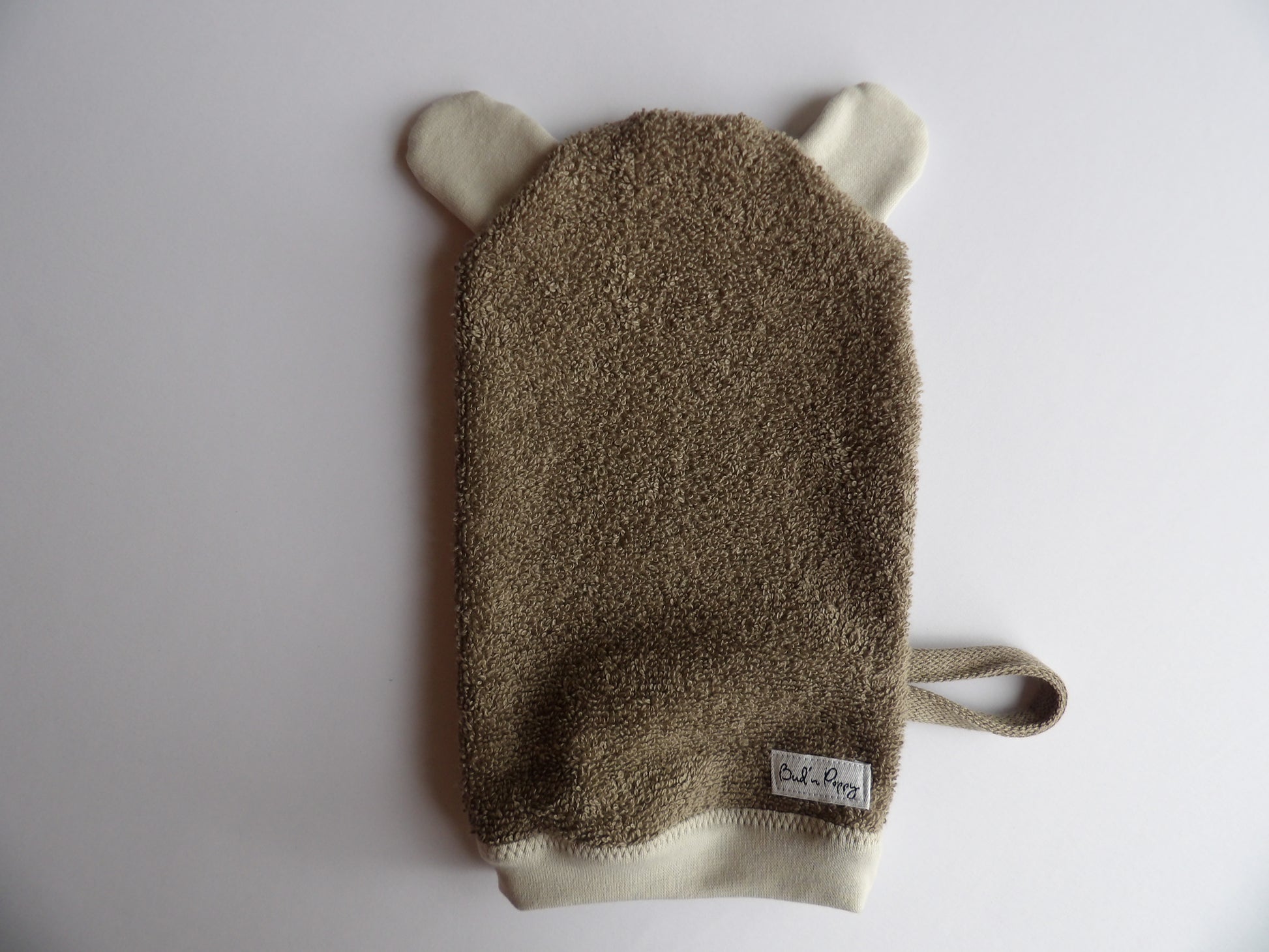 - A bath mitten in classic terry cloth. The terry cloth provides a lightly exfoliating feeling and effectively absorbs water, perfect for bathing and washing.