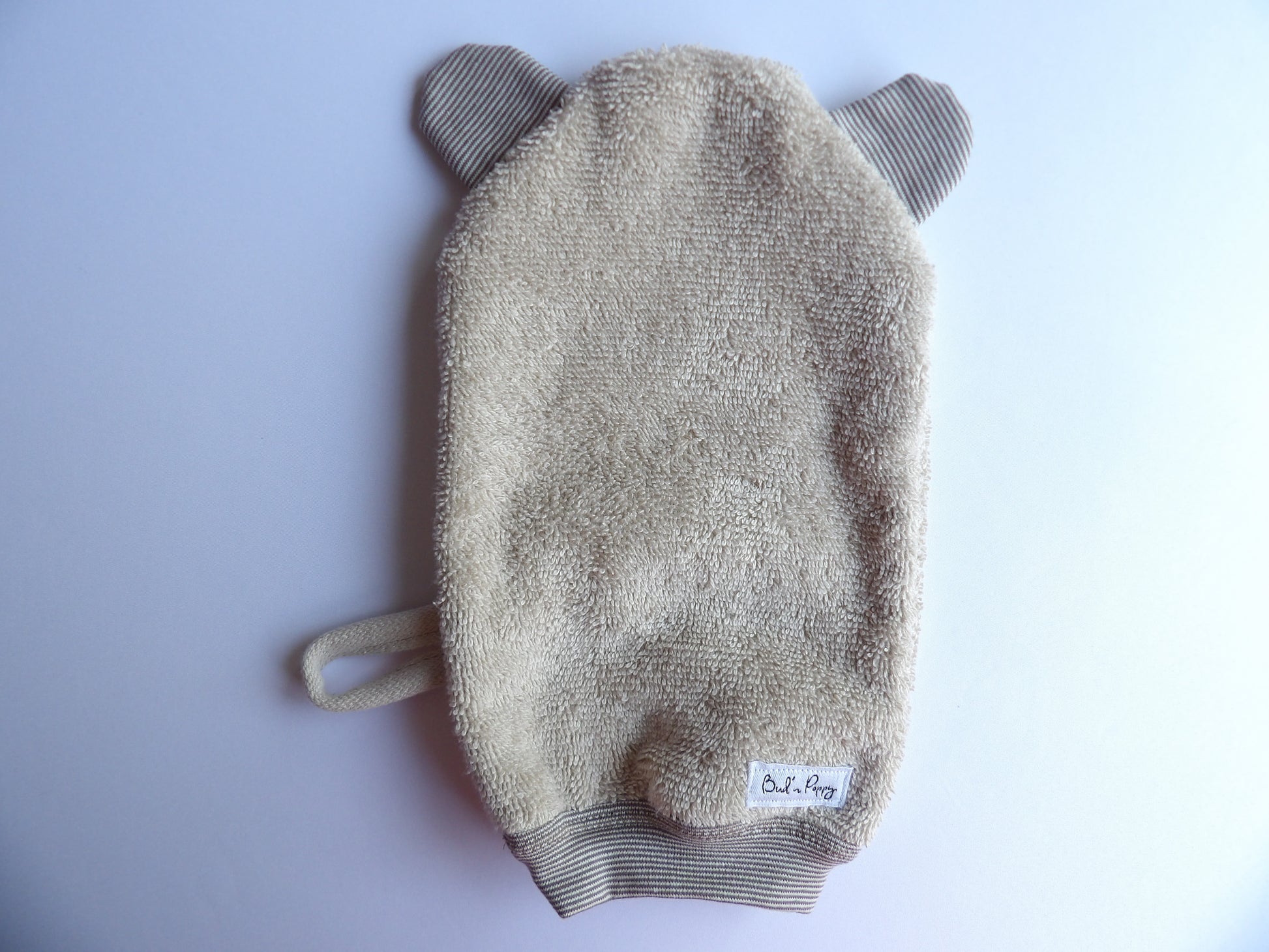 - A bath mitten in classic terry cloth. The terry cloth provides a lightly exfoliating feel and effectively absorbs water, perfect for bathing and washing.