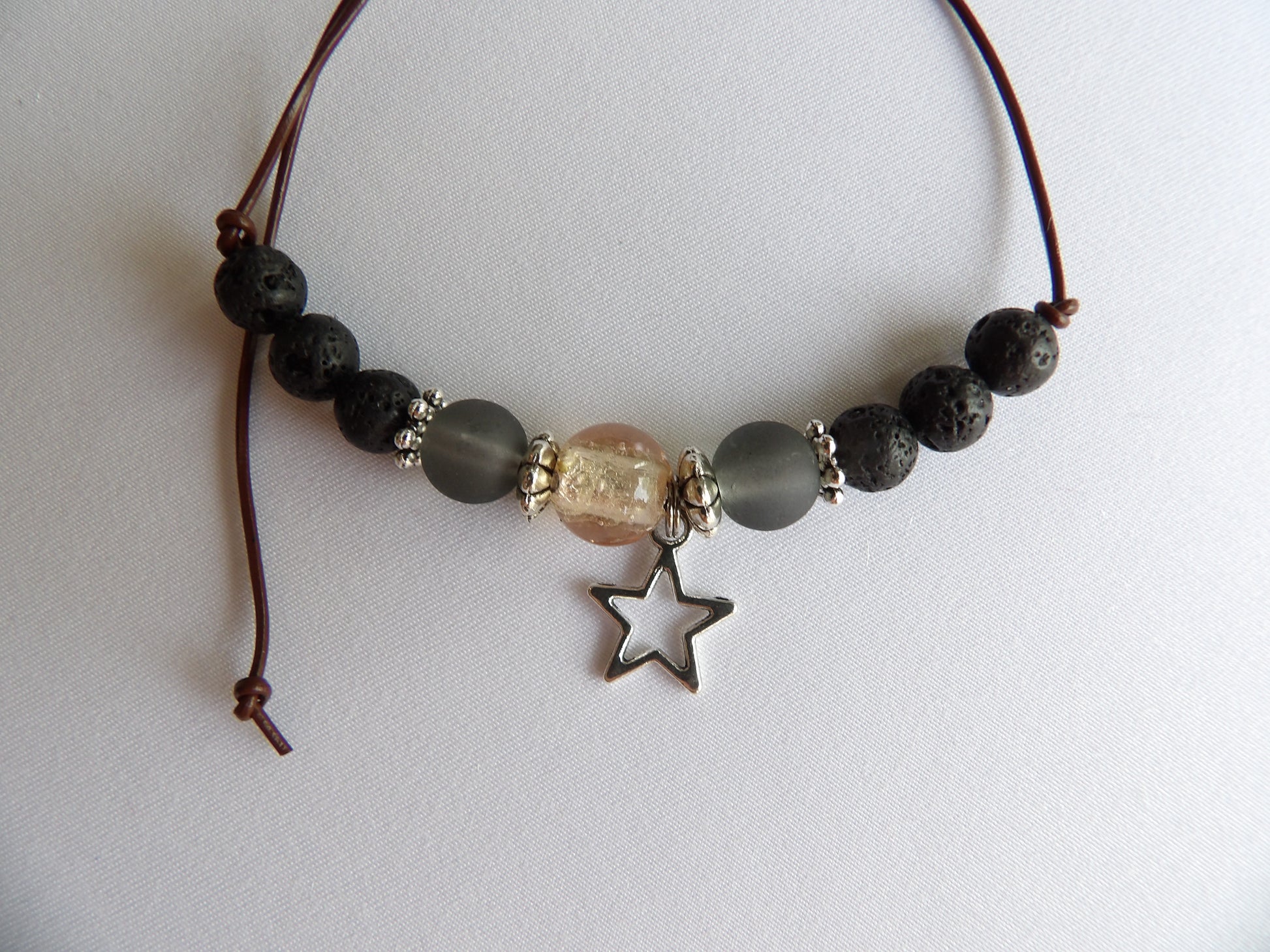- Material beads, spacers and charms: Natural lava, glass, metal and stainless steel.