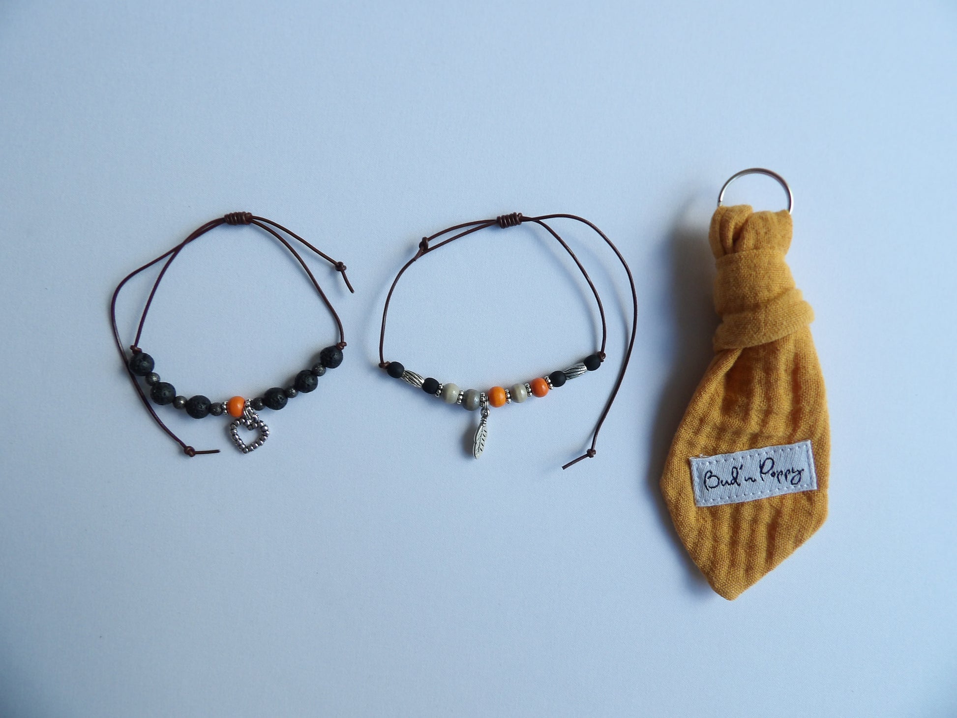 - 2 handmade bracelets for adults that match the set. The straps on the bracelets are made of genuine cow leather, which is a durable, soft and natural material that ages beautifully over time. The bracelets are adjustable to fit most wrists.