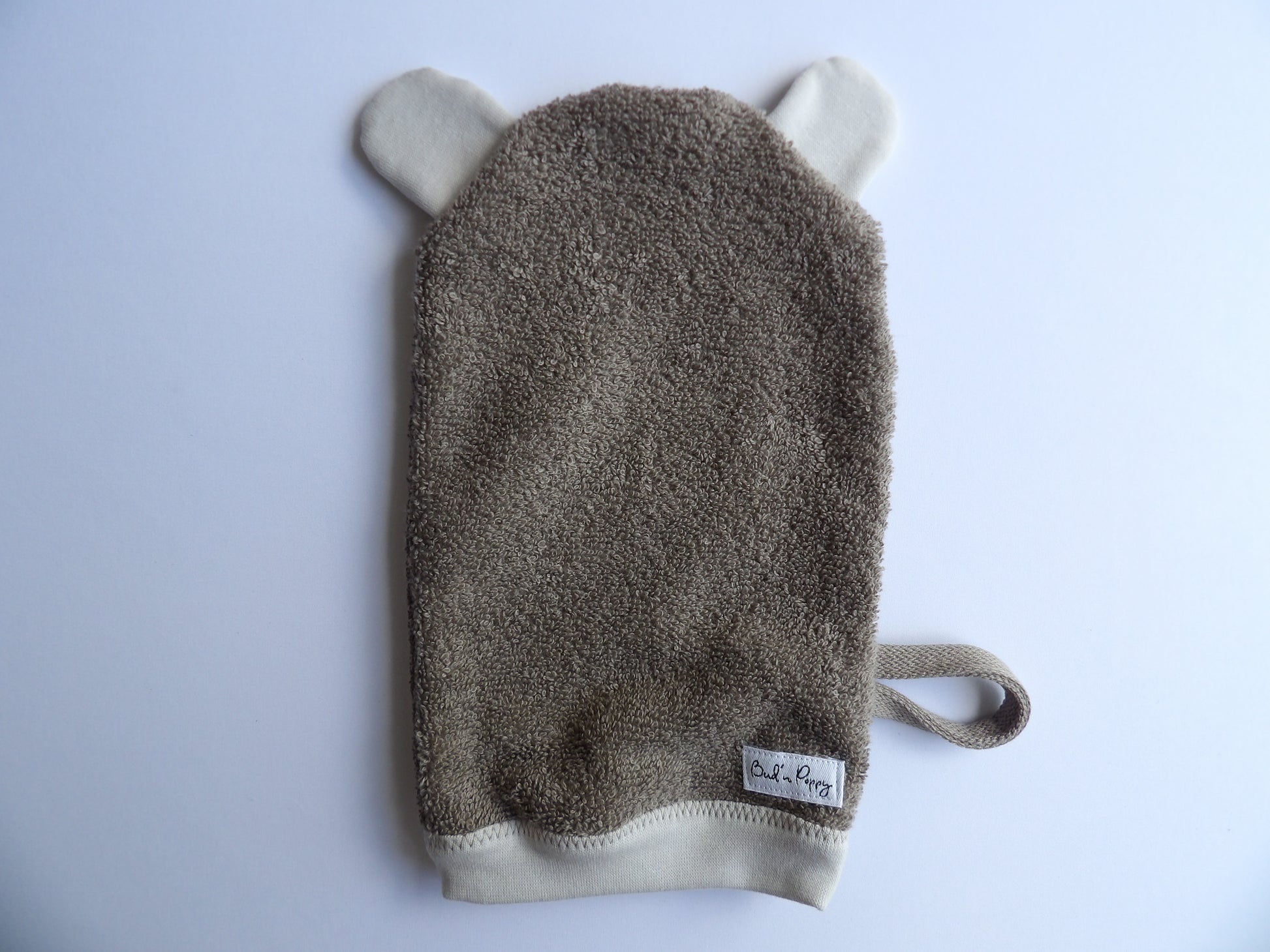 - A bath mitten in classic terry cloth. The terry cloth provides a lightly exfoliating feeling and effectively absorbs water, perfect for bathing and washing.