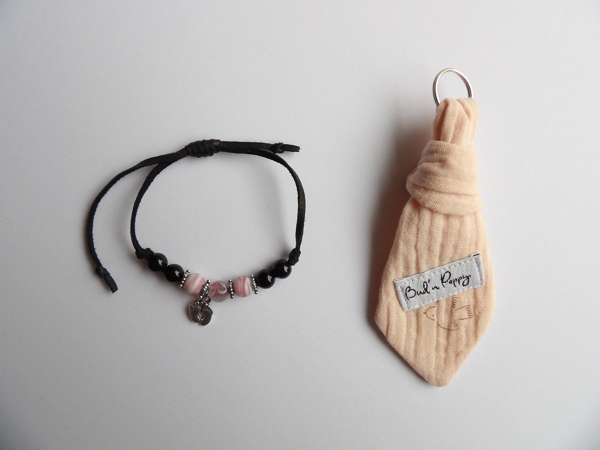 - Bud´n Poppy's signature detail, Bud´n Poppy's tie pendant/keyring for adults. Bud´n Poppy's tie pendant/keyring is made from the same muslin fabric as the baby clothes.
