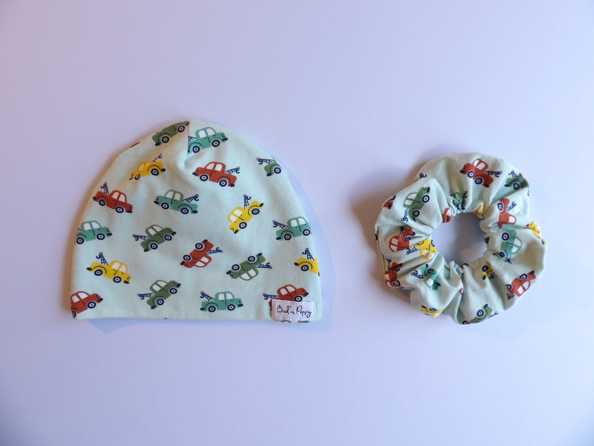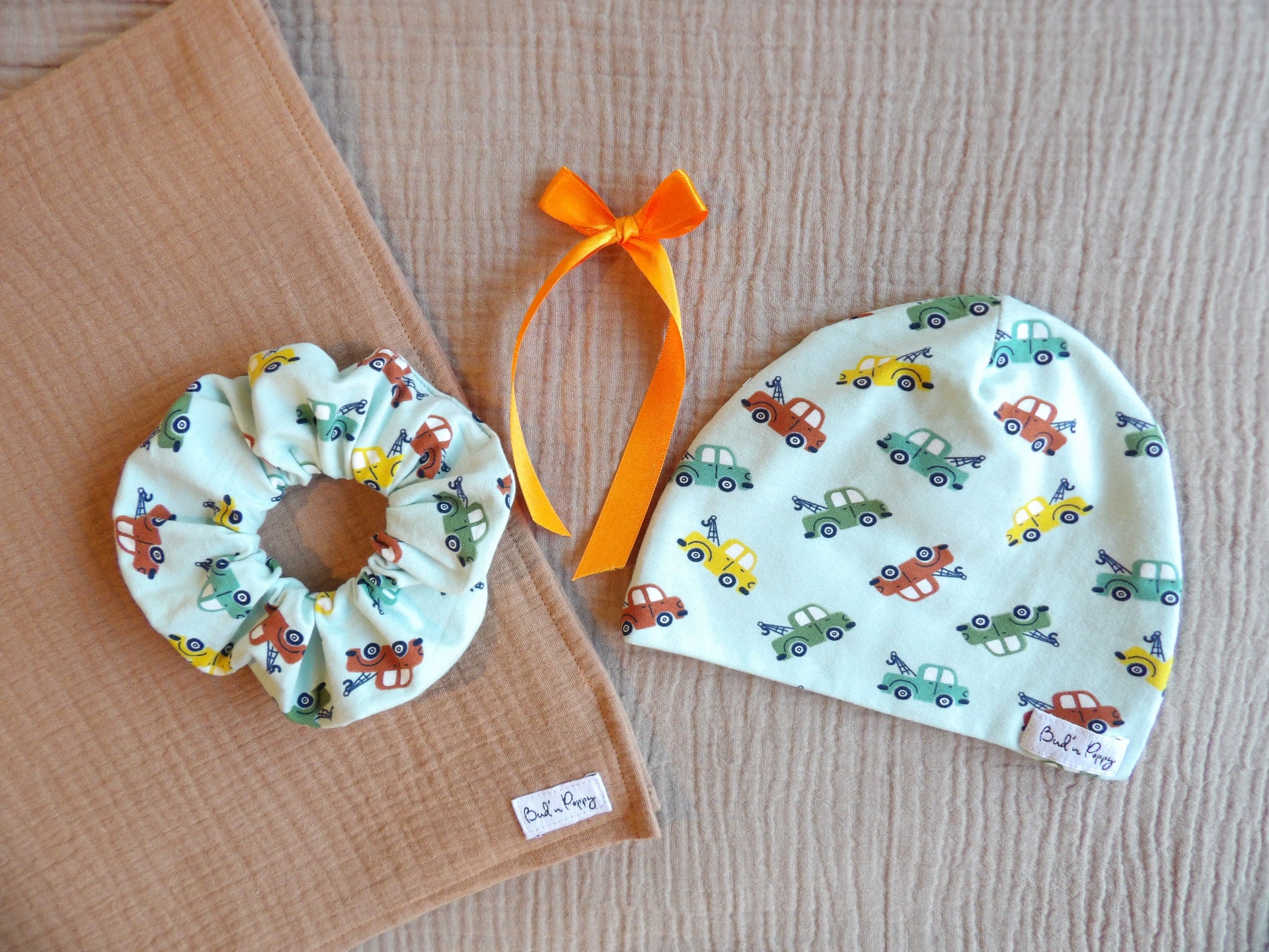 💛 Till varje BB-mössa följer en matchande accessoar till föräldern i samma tyg – en scrunchie eller ett Bud’n Poppy-hängsmycke/nyckelring. En symbol för bandet mellan liten och stor, att bära vidare även när babyn vuxit ur sin första mössa.