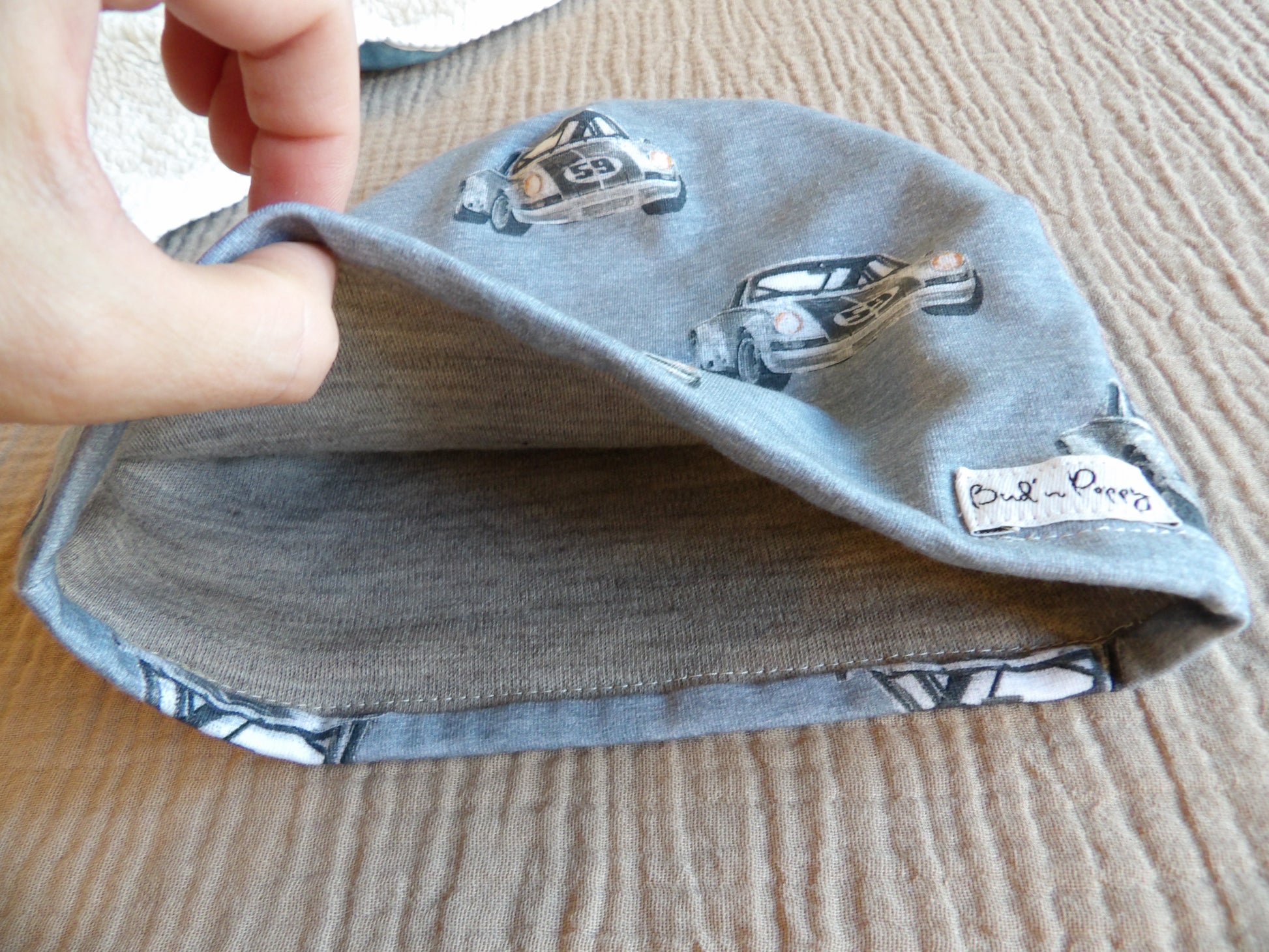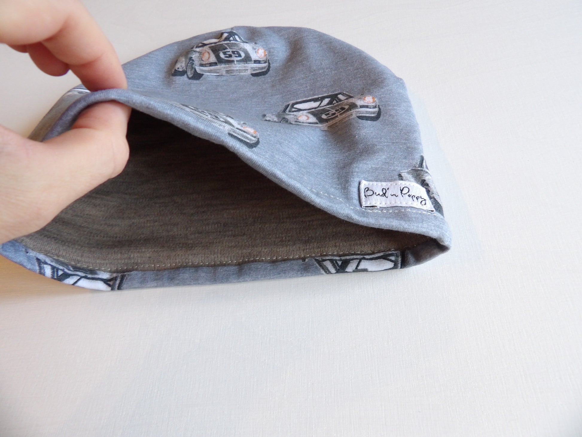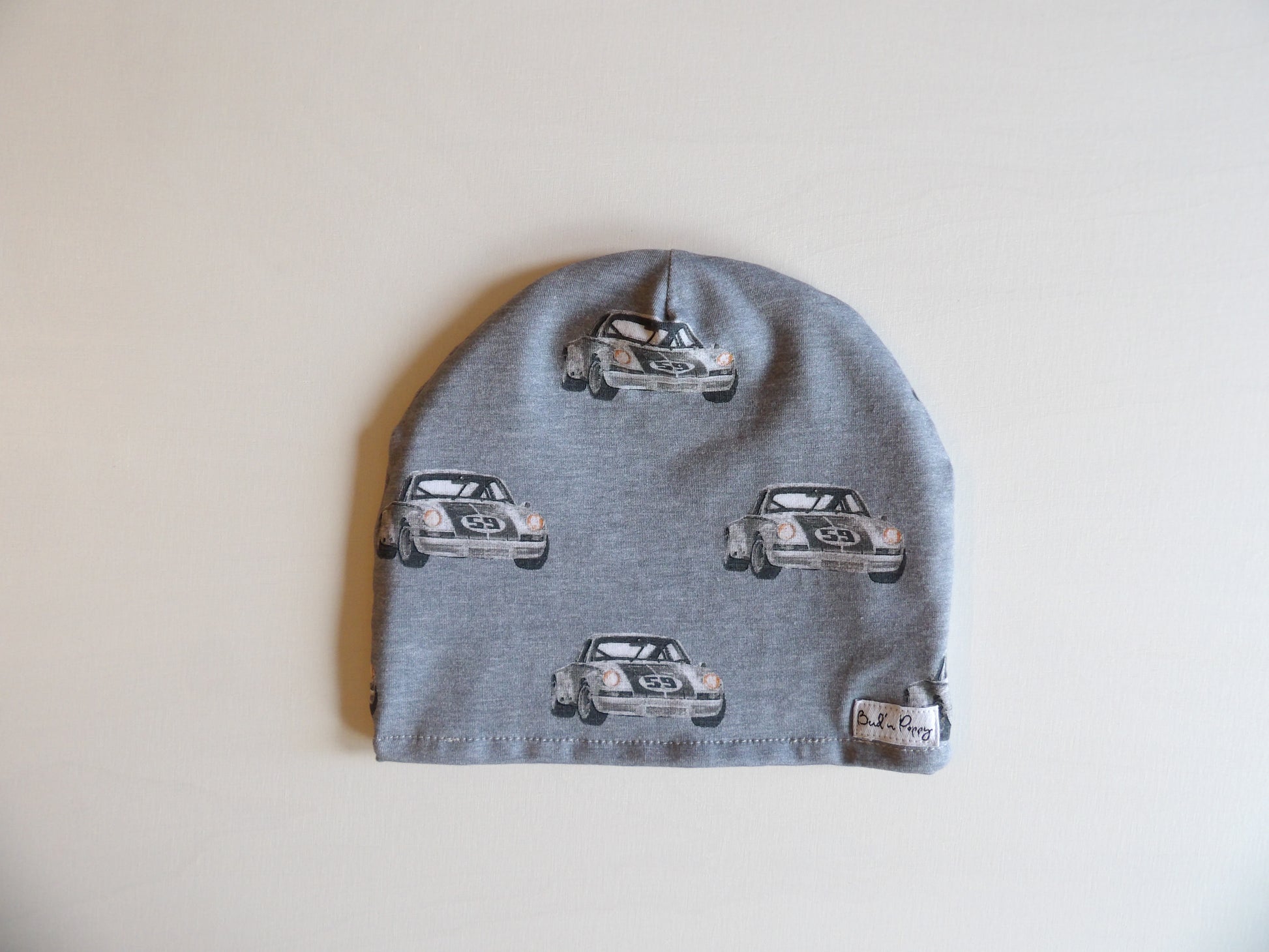 Fodrad barnmössa i merinoull, Grey Cars, storlek 48/50 & 50/52 - Bud´s Wardrobe