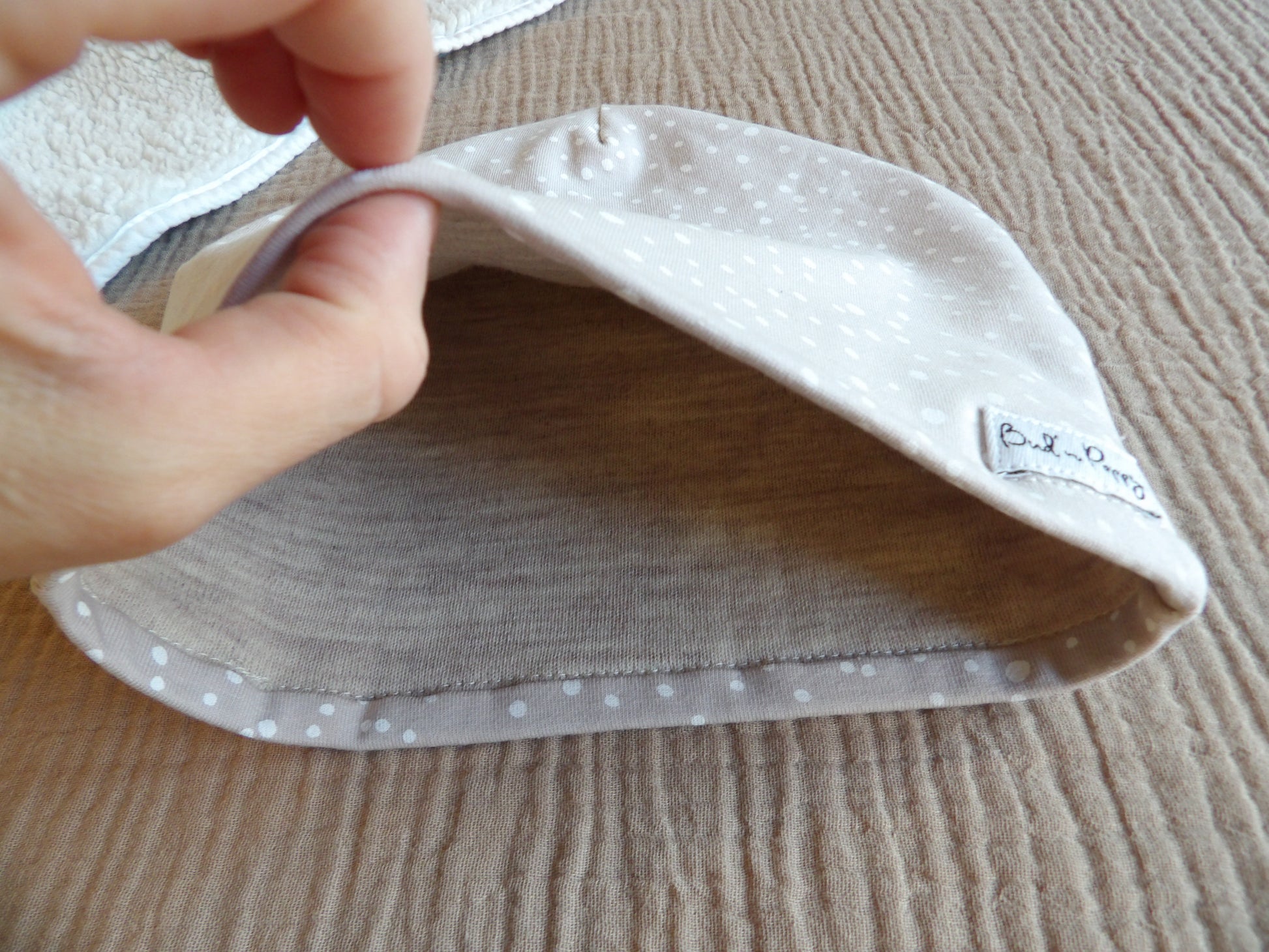Varje mössa är handgjord i Sverige och sydd av OEKO-TEX®-certifierade tyger, fria från skadliga ämnen, skonsam mot barnets hud och vänlig mot naturen.
