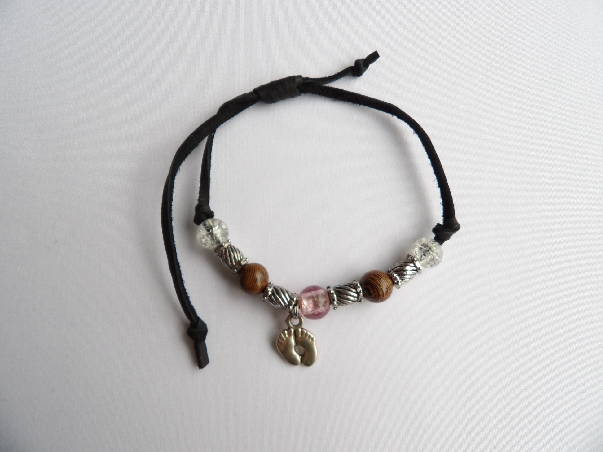 Armbandet för vuxen: Material band: Äkta hjortskinn (laskrem). Material pärlor, mellandelar och berlock: Metall, glas, trä och rostfritt stål. Skötselråd: Torkas av med fuktig trasa.