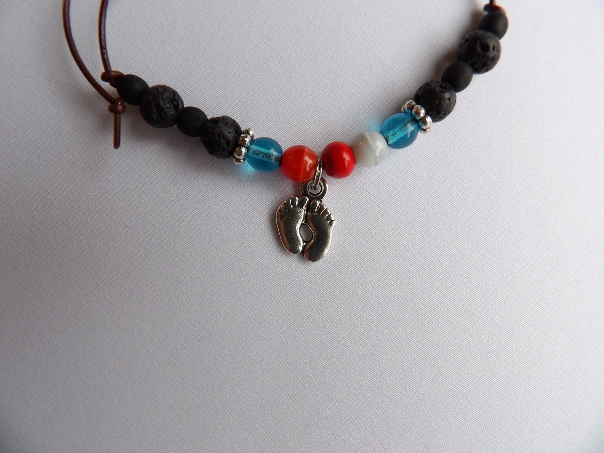 - Material pärlor, mellandelar och berlock: Glas, naturlig lava, metall och rostfritt stål.