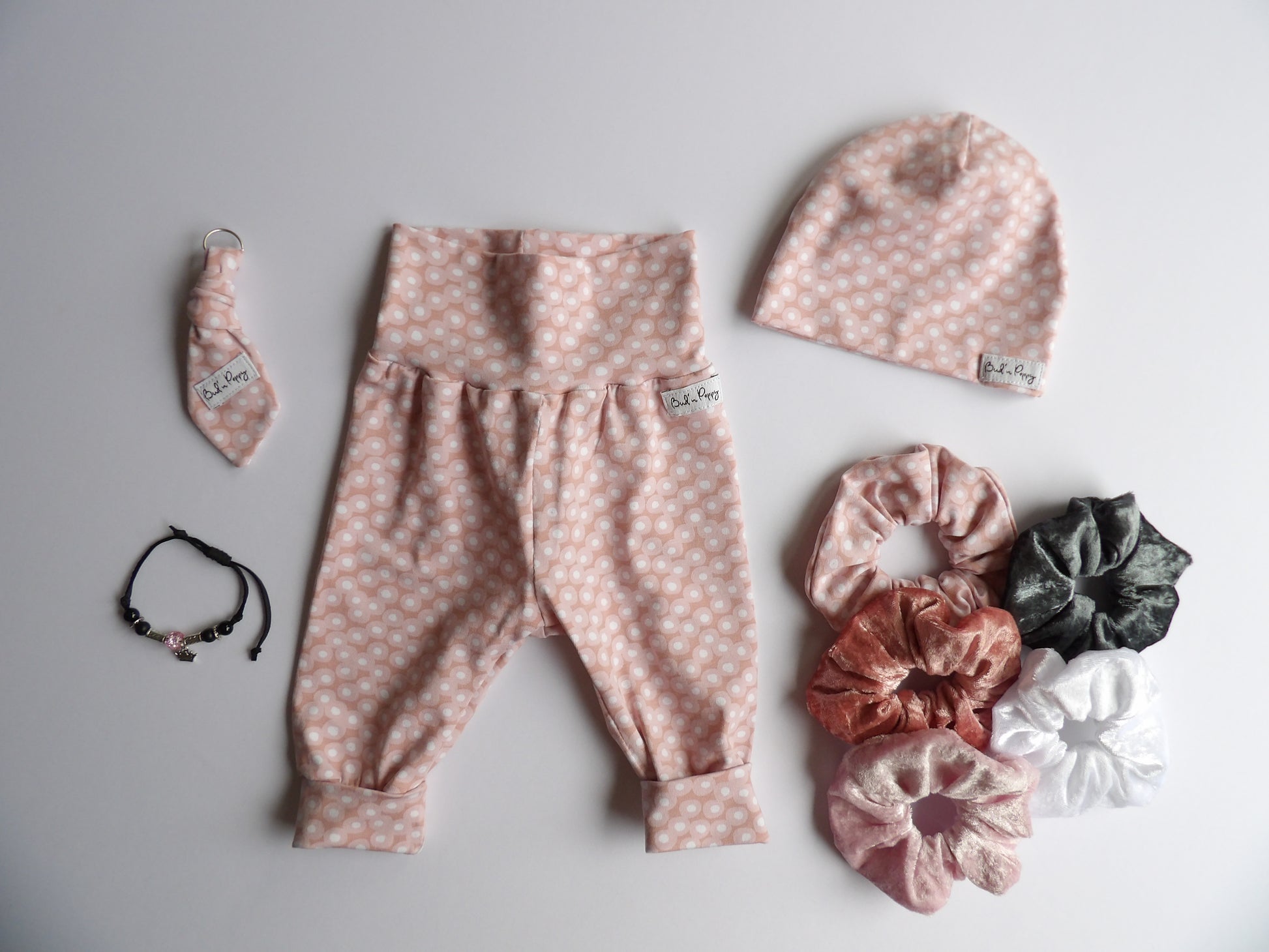 - En matchande scrunchie till vuxen i samma mjuka trikåtyg som babykläderna.