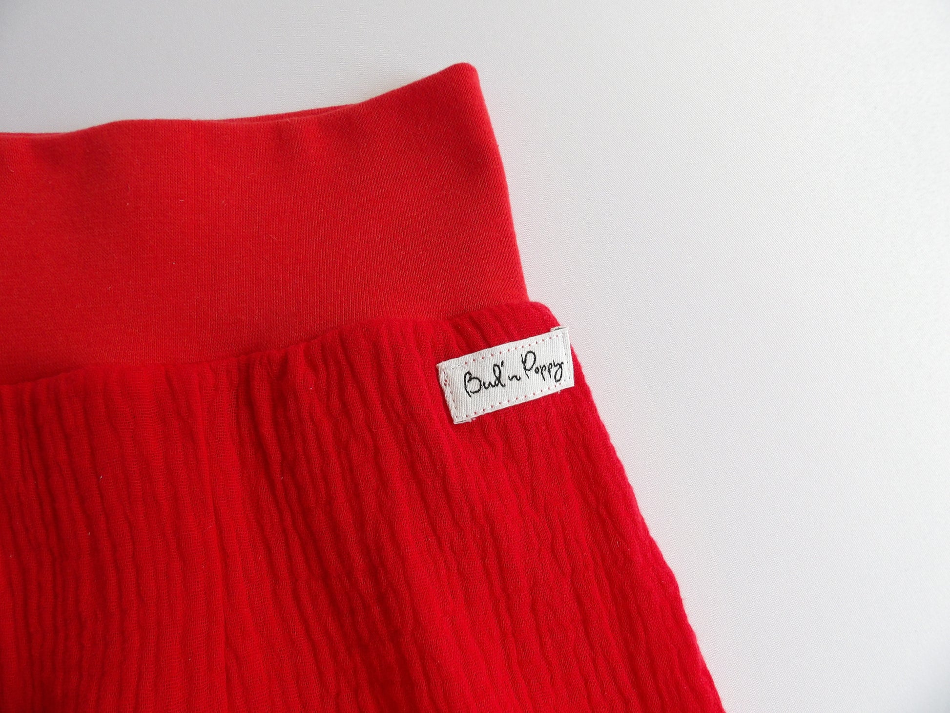 - Ett par luftiga och mjuka växa-byxor till baby. Växa-byxan är tillverkad i mjukt muslintyg och med muddar av trikå. Byxan har extra långa muddar i midja och benslut som enkelt kan vikas ner i takt med att babyn växer, vilket förlänger användningstiden och ger en flexibel passform.