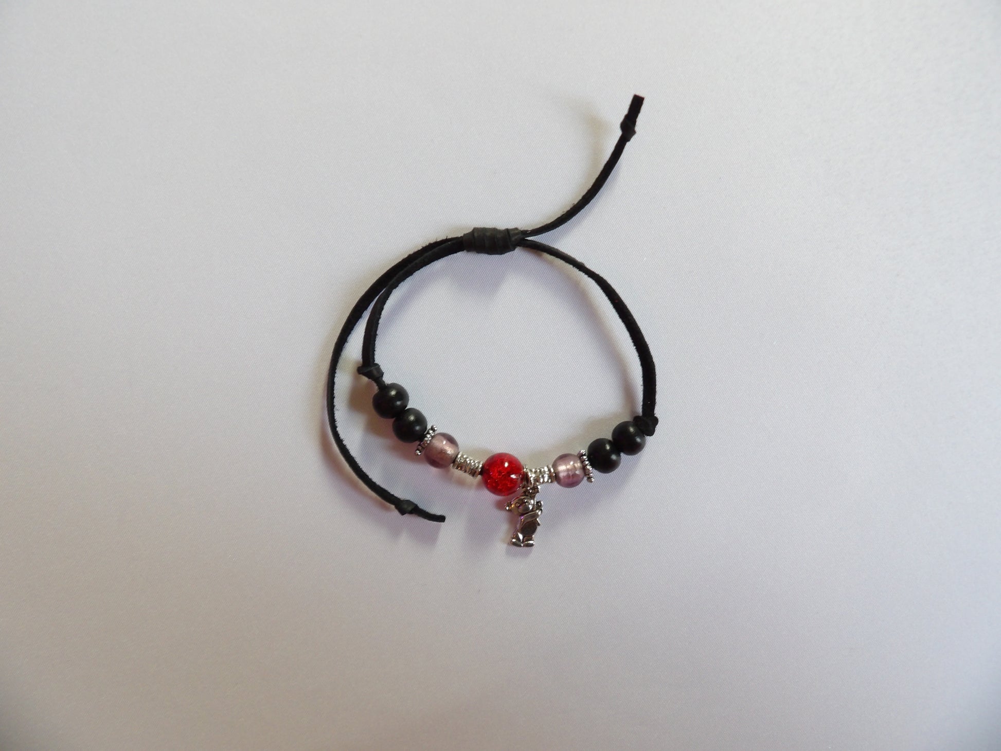 - Ett handgjort armband till vuxen som matchar med setet. Armbandet är tillverkat i naturligt, slitstarkt hjortskinn (laskrem) och matchande detaljer. Bud´n Poppys armband är justerbart för att passa de allra flesta handleder.