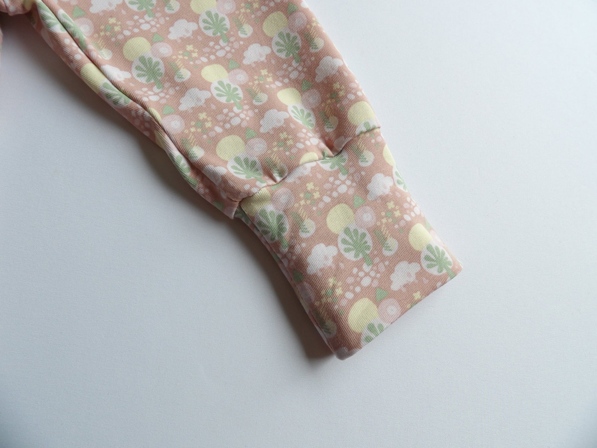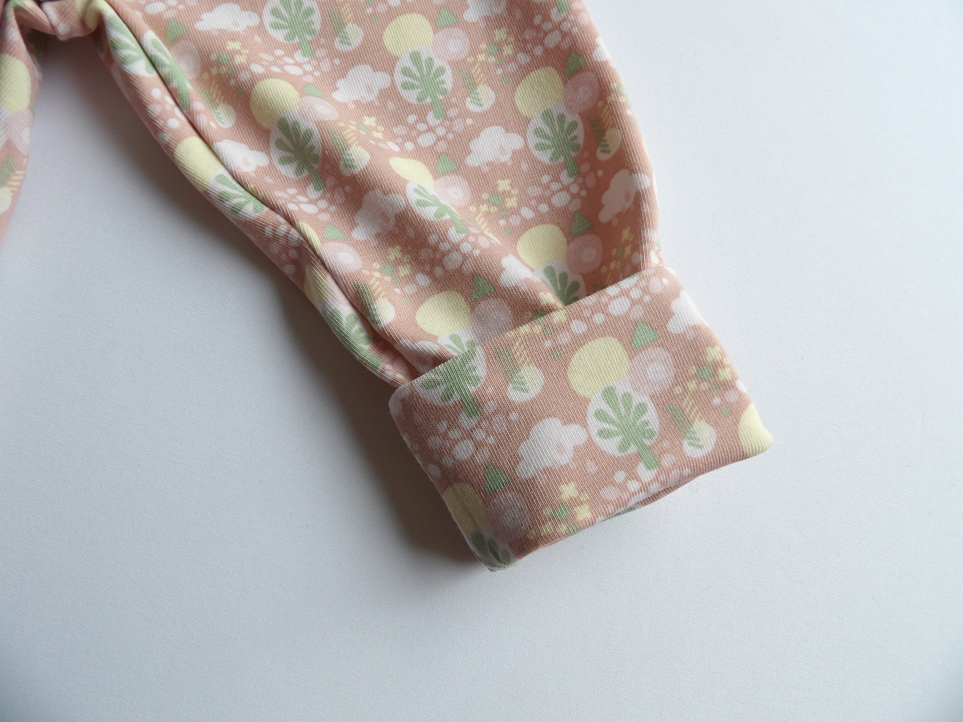 - En matchande scrunchie till vuxen i samma mjuka trikåtyg som babykläderna.
