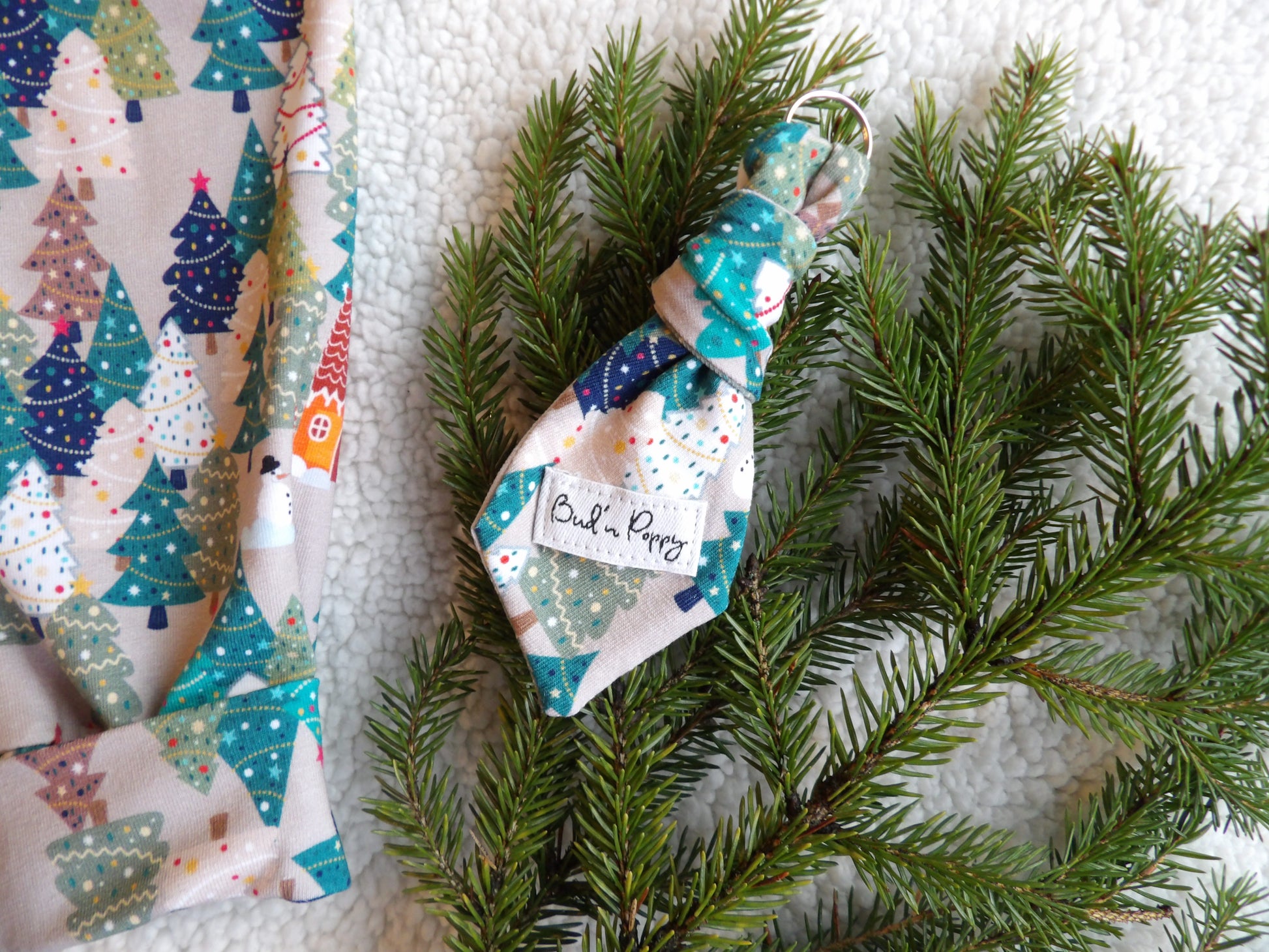 - Bud´n Poppys signaturdetalj, Bud´n Poppys slips-hängsmycke/nyckelring till vuxen tillverkad i samma trikåtyg som babykläderna.