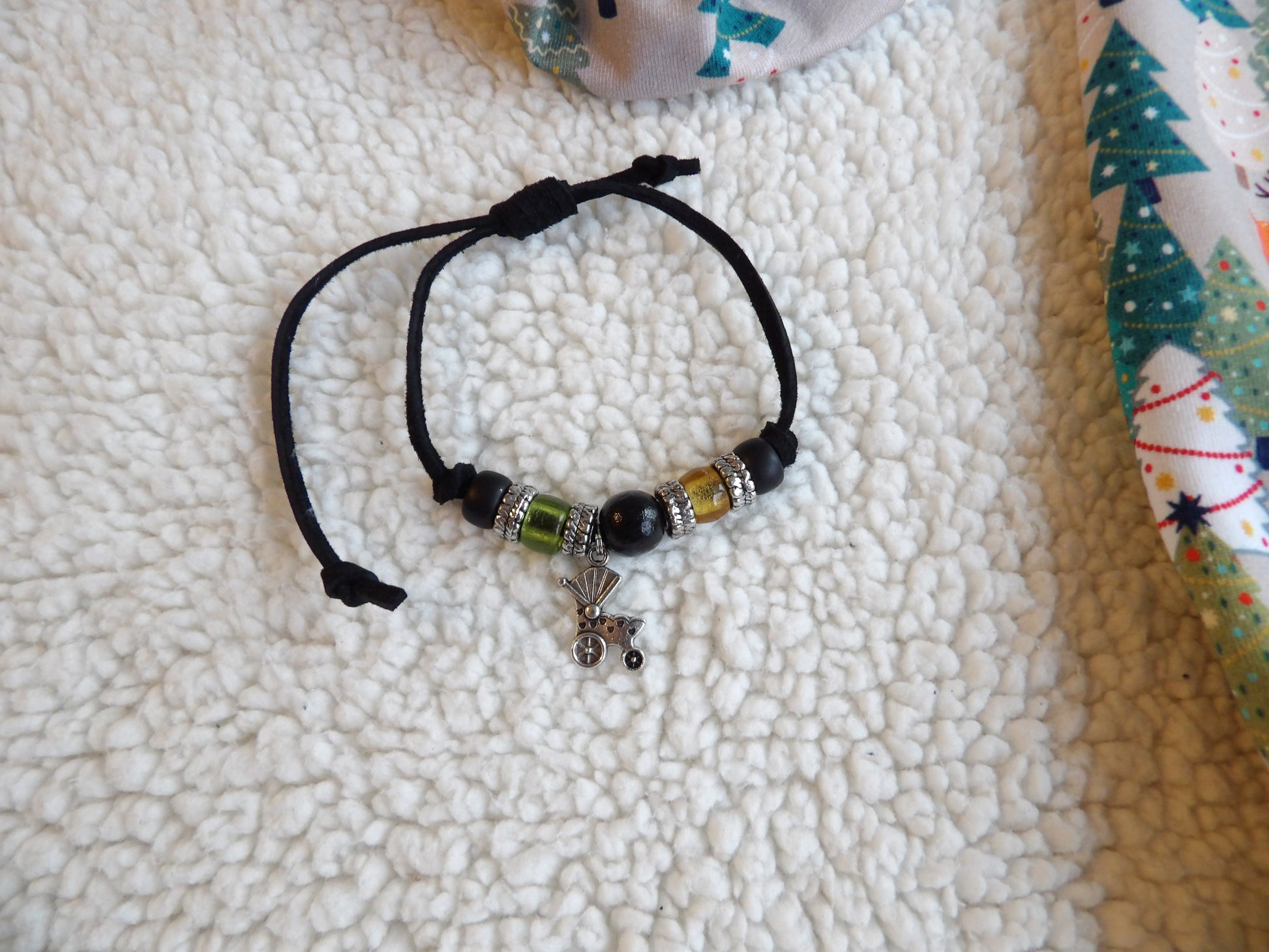 - Ett handgjort armband till vuxen som matchar med setet. Armbandet är justerbart för att passa de allra flesta handleder.