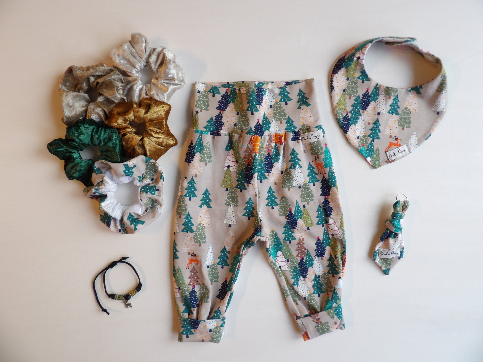 - En matchande scrunchie till vuxen i samma mjuka trikåtyg som babykläderna.