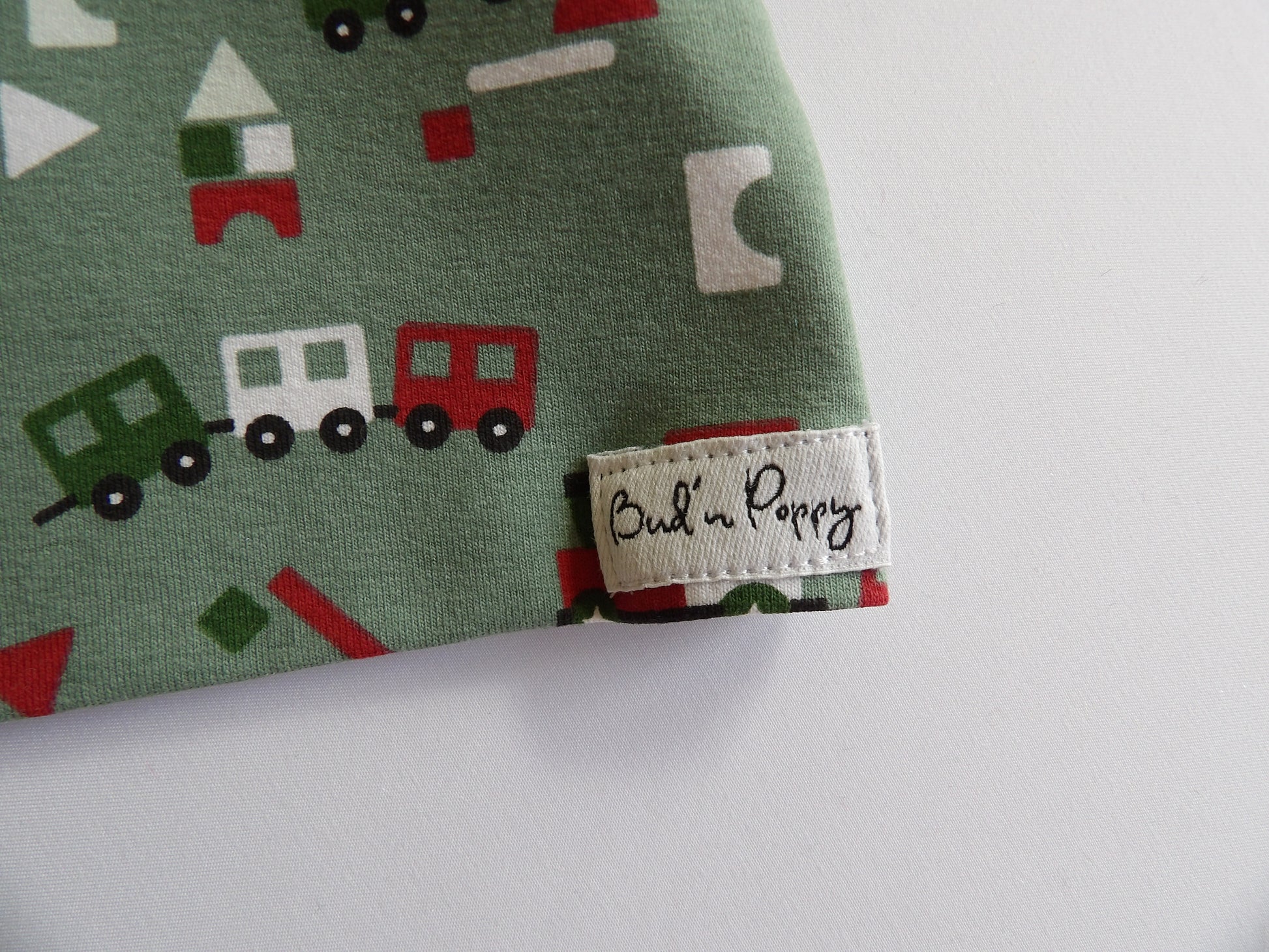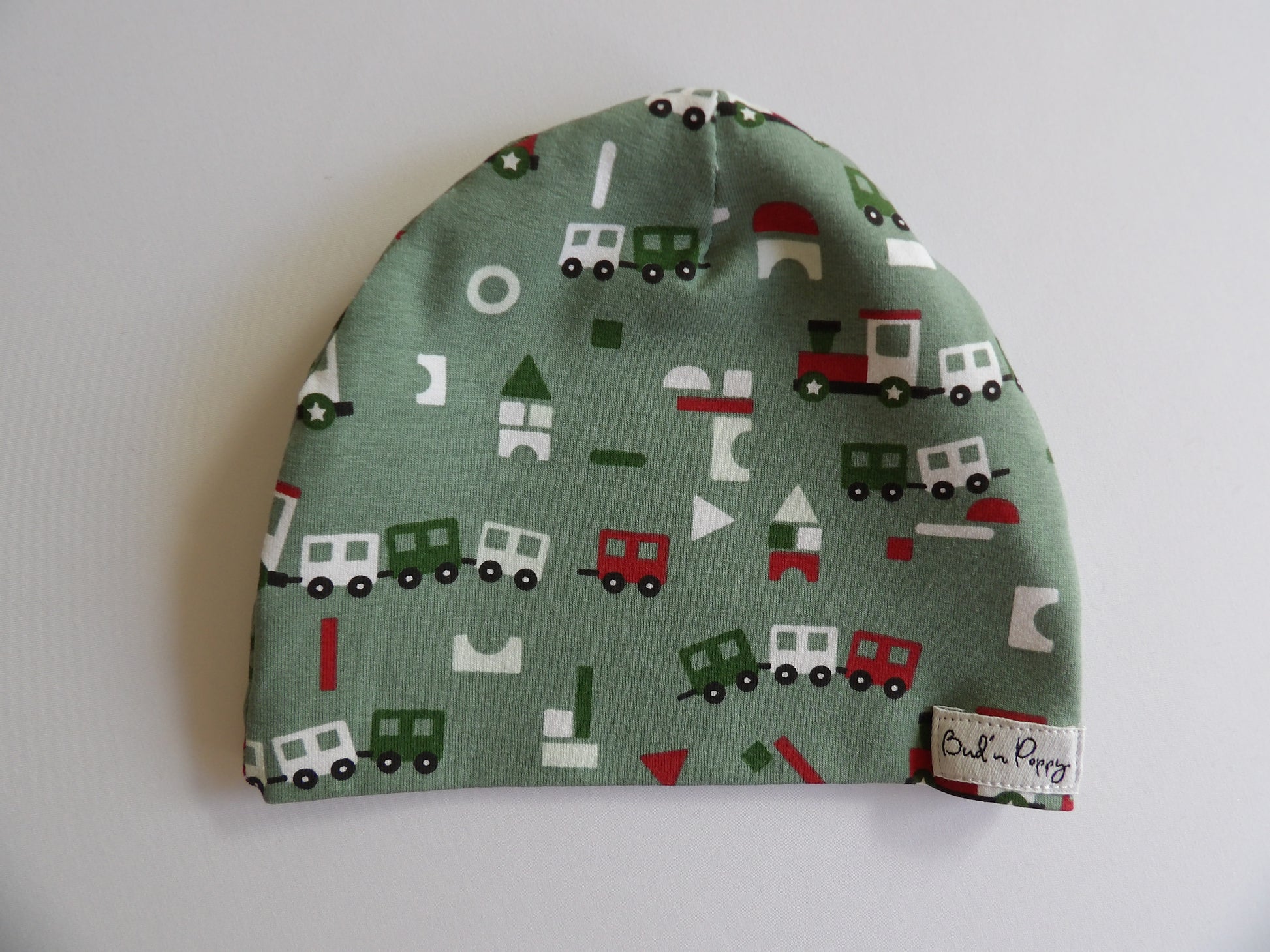 - En mössa i dubbelt trikåtyg, storlek 40/42 (strl 56). Mössan är tillverkad i samma tyg som växa-byxorna. Det rekommenderas att nyfödda har mössa ute året runt och en mössa var därför ett enkelt och självklart val som en del av Bud´n Poppys Originalset.