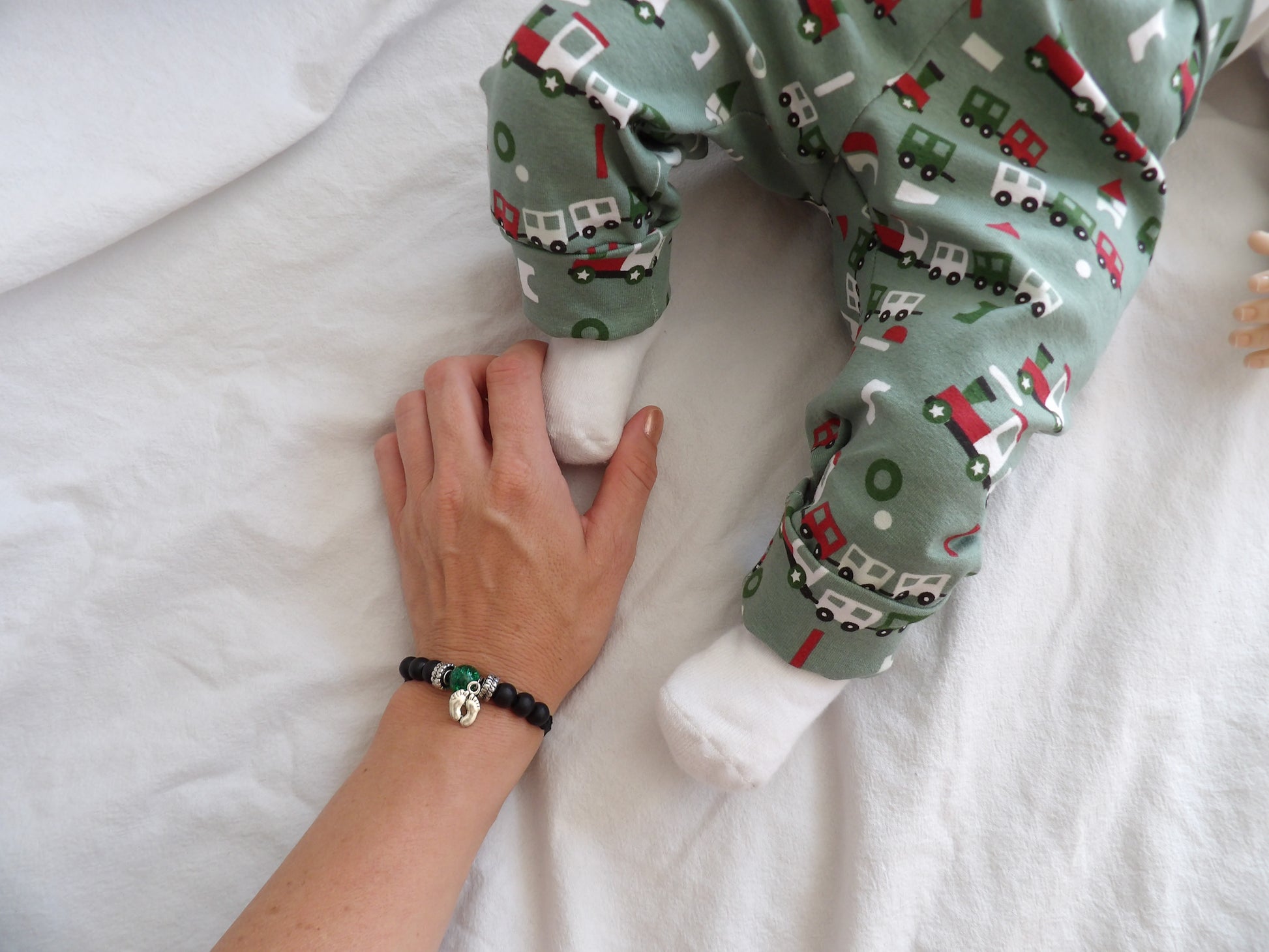 Det finns endast max ett fåtal handgjorda babyset i varje tyg och inga två set är exakt likadana. Även i de få set som sys i samma tyg skiljer sig detaljerna åt. De handgjorda armbanden tillverkas och matchas alltid specifikt för sitt set. Detta gör varje set unikt, personligt, genuint och omöjligt att massproducera, precis som den relation det symboliserar. En genomtänkt present till babyshowern, present till nyfödd eller till dig själv.