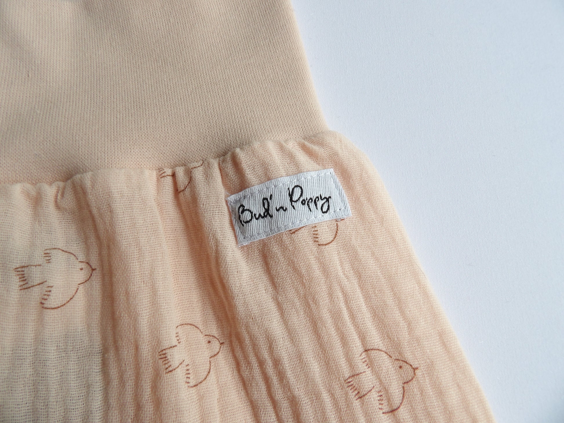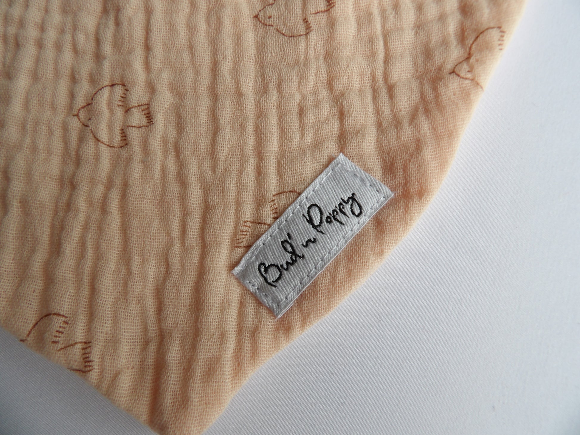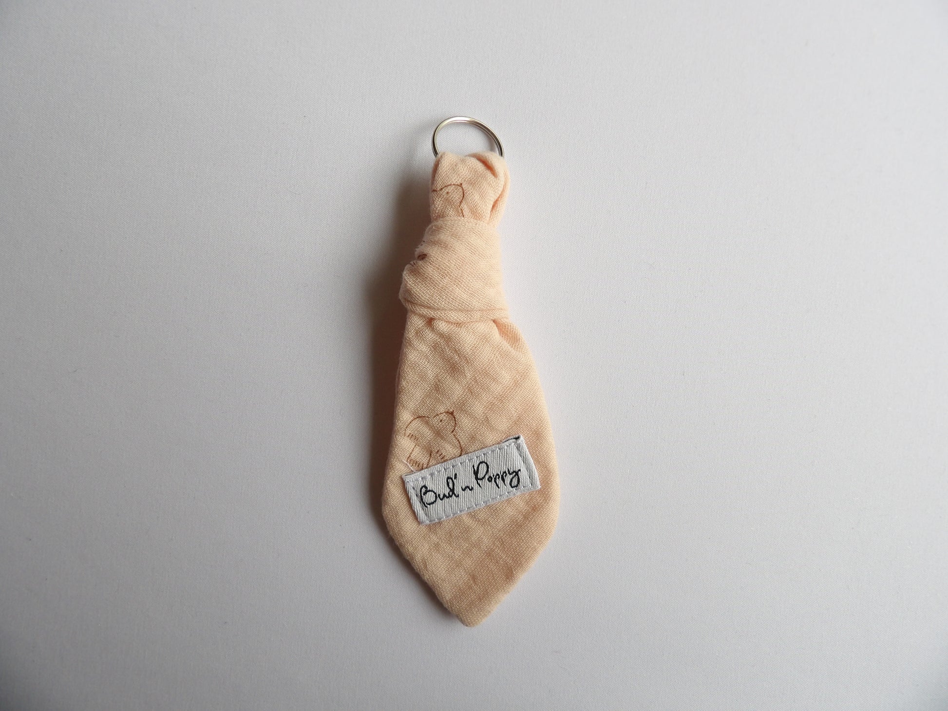 - 💛 Bud´n Poppys signaturdetalj, Bud´n Poppys slips-hängsmycke/nyckelring till vuxen tillverkad i samma muslintyg som babykläderna.