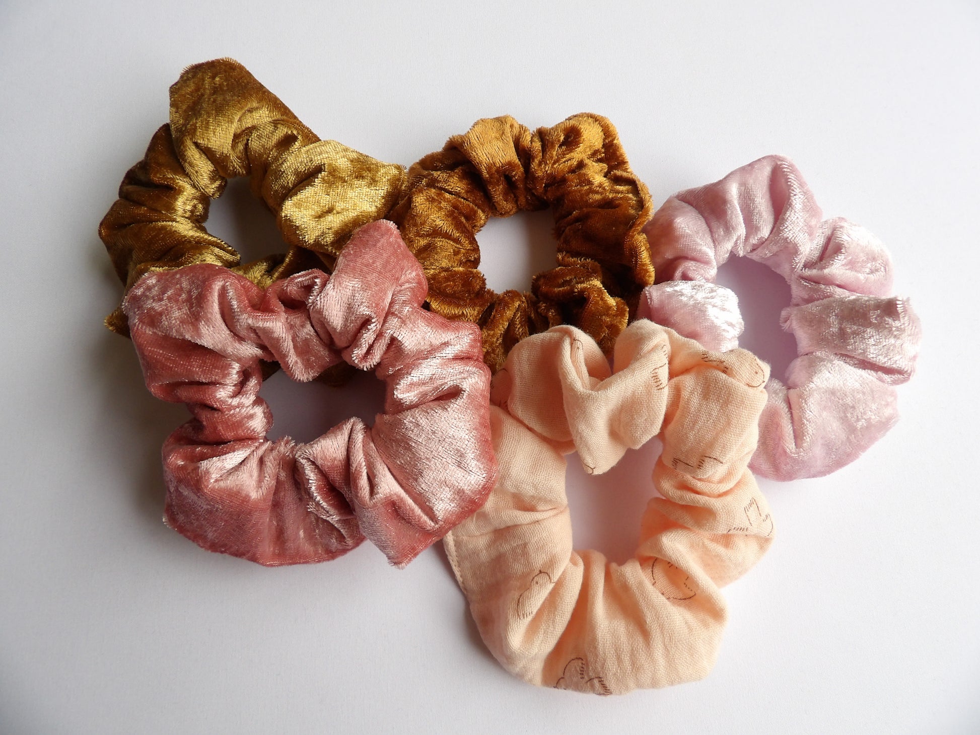 - 🎀 Fyra scrunchies till vuxen i velourtyg i olika färger, där färgerna är noggrant utvalda för att matcha det kompletta setet.