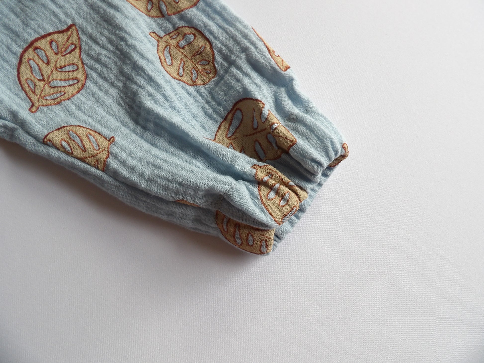 - Ett par mjuka byxor i muslintyg till baby. Byxan är perfekt för varma dagar och resår i midja och benslut ger en följsam och bekväm passform som håller byxorna på plats.