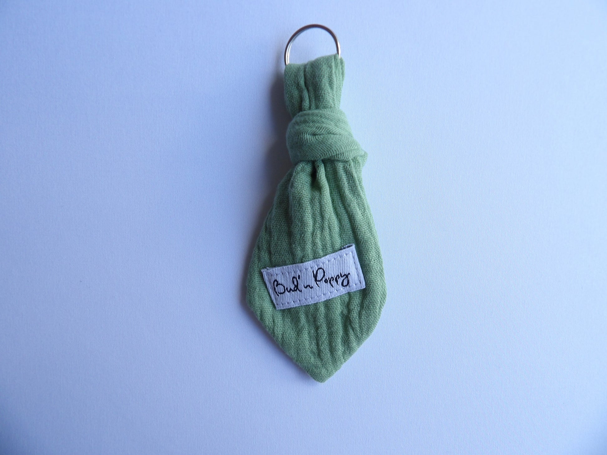 - Bud´n Poppys signaturdetalj, Bud´n Poppys slips-hängsmycke/nyckelring till vuxen tillverkad i samma muslintyg som babykläderna.