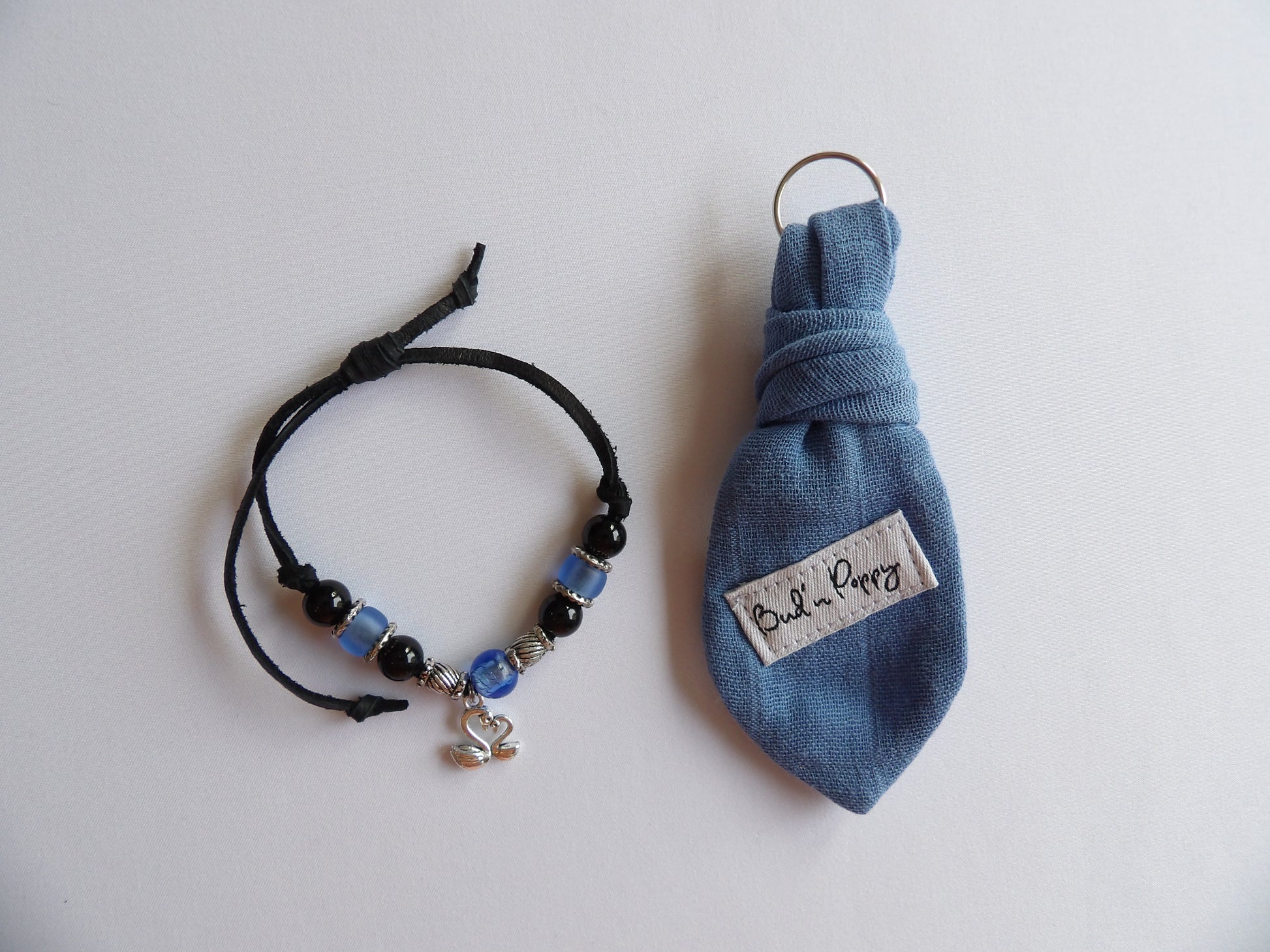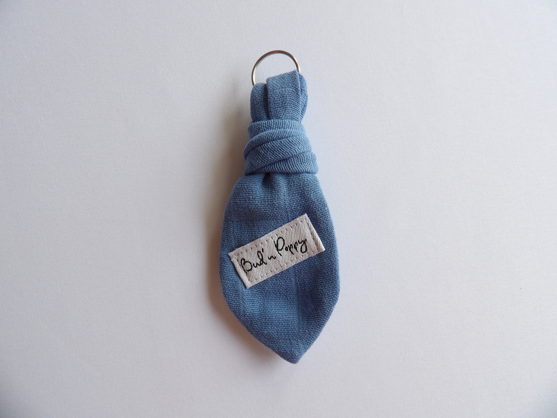 - Bud´n Poppys signaturdetalj, Bud´n Poppys slips-hängsmycke/nyckelring till vuxen tillverkad i samma muslintyg som babykläderna.