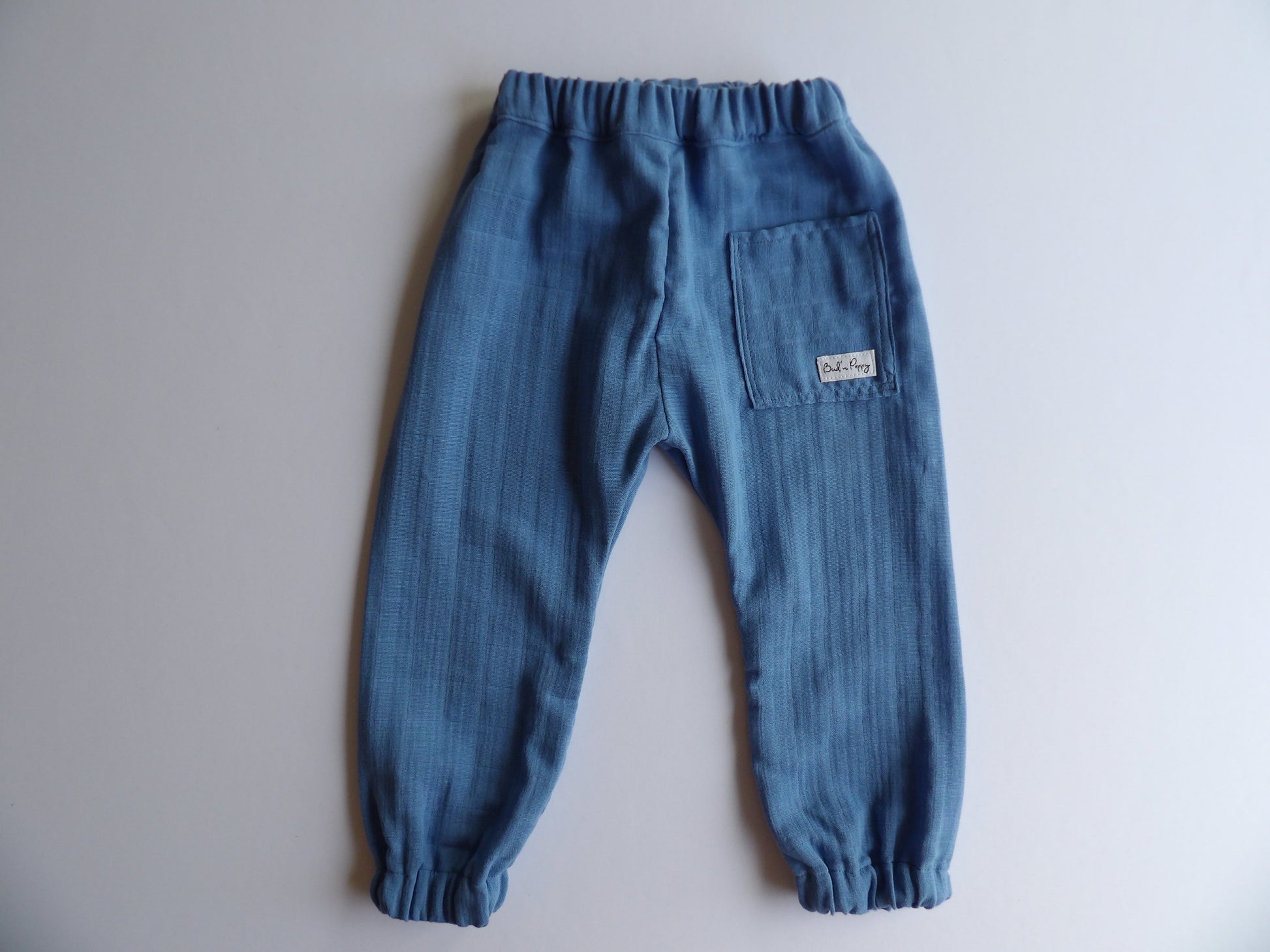 - Ett par mjuka byxor i muslintyg till baby. Byxan är perfekt för varma dagar och resår i midja och benslut ger en följsam och bekväm passform som håller byxorna på plats.