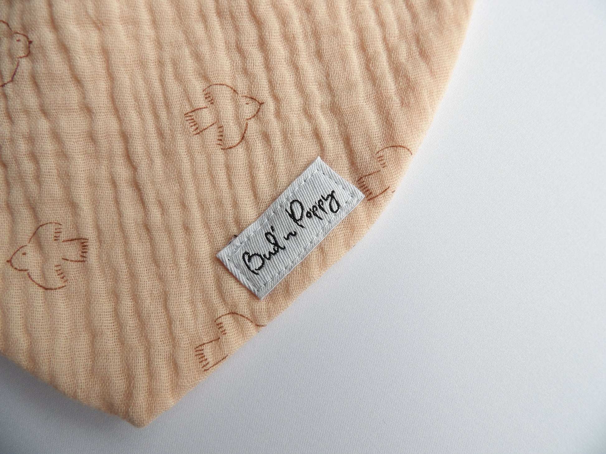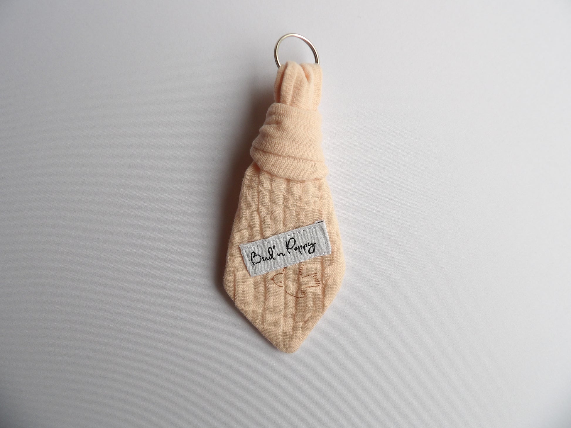 - Bud´n Poppys signaturdetalj, Bud´n Poppys slips-hängsmycke/nyckelring till vuxen. Bud´n Poppys slips-hängsmycke/nyckelring är tillverkad i samma muslintyg som babykläderna.