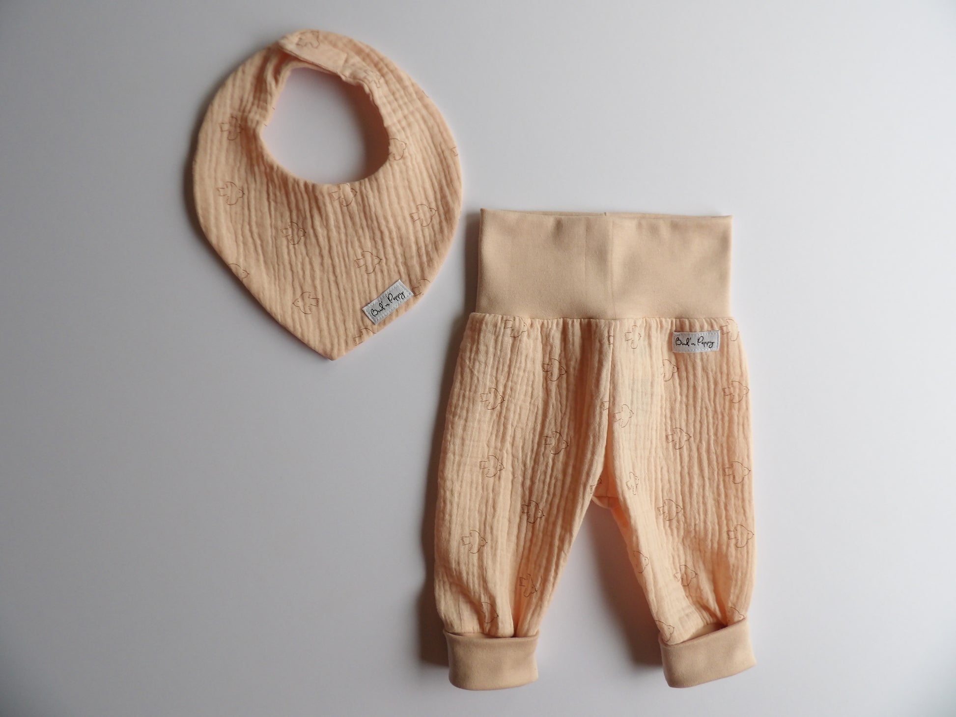 - En matchande scrunchie till vuxen i samma mjuka muslintyg som babykläderna.