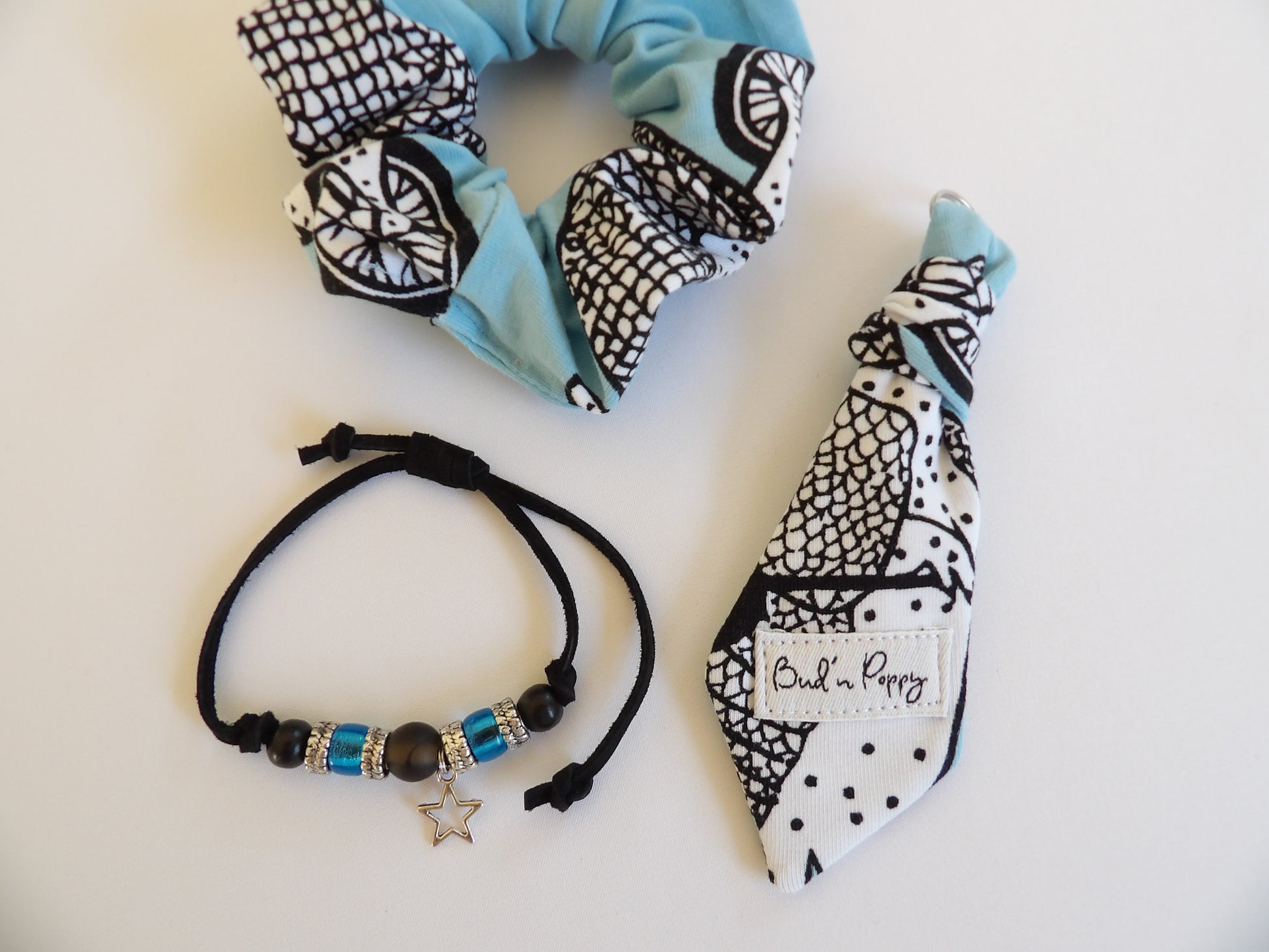 - En matchande scrunchie till vuxen i samma mjuka trikåtyg som babykläderna.