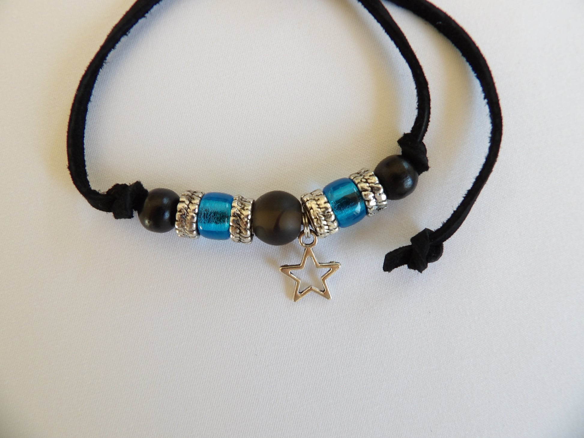 - Ett handgjort armband till vuxen som matchar med setet. Armbandet är tillverkat i naturligt, mjukt och slitstarkt äkta mocka och matchande detaljer. Armbandet är justerbart för att passa de allra flesta handleder.