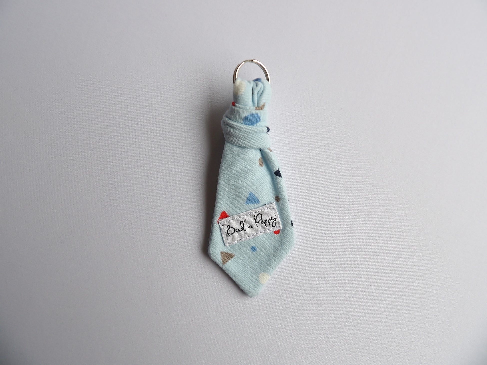 - Bud´n Poppys signaturdetalj, Bud´n Poppys slips-hängsmycke/nyckelring till vuxen tillverkad i samma trikåtyg som babykläderna.