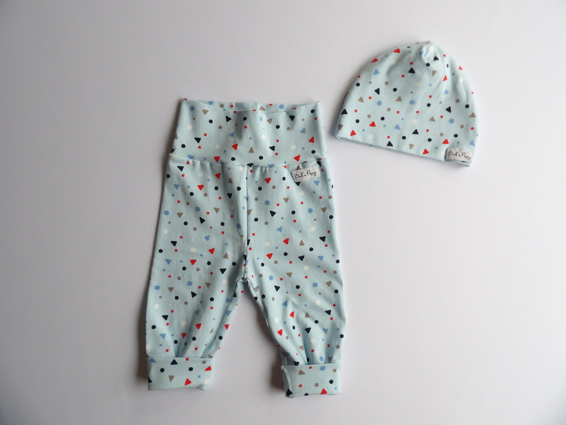 - En mössa i dubbelt trikåtyg, storlek 40/42 (strl 56). Mössan är tillverkad i samma tyg som växa-byxorna. Det rekommenderas att nyfödda har mössa ute året runt och en mössa var därför ett enkelt och självklart val som en del av Bud´n Poppys Originalset.