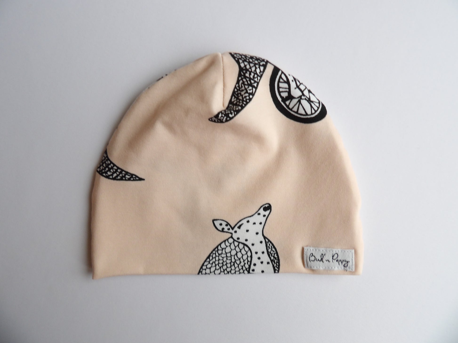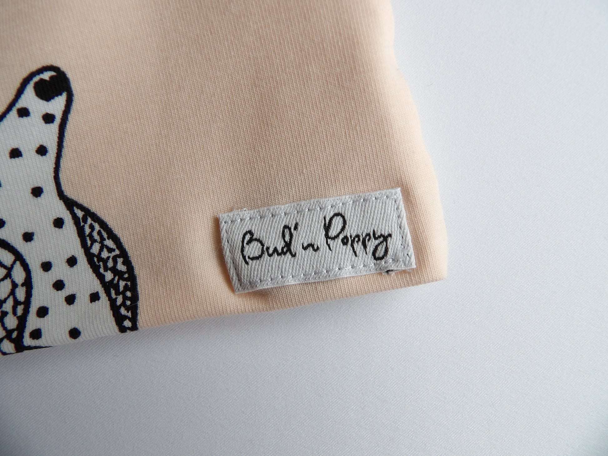 - En mössa i dubbelt trikåtyg, storlek 40/42 (strl 56). Mössan är tillverkad i samma tyg som växa-byxorna. Det rekommenderas att nyfödda har mössa ute året runt och en mössa var därför ett enkelt och självklart val som en del av Bud´n Poppys Originalset.