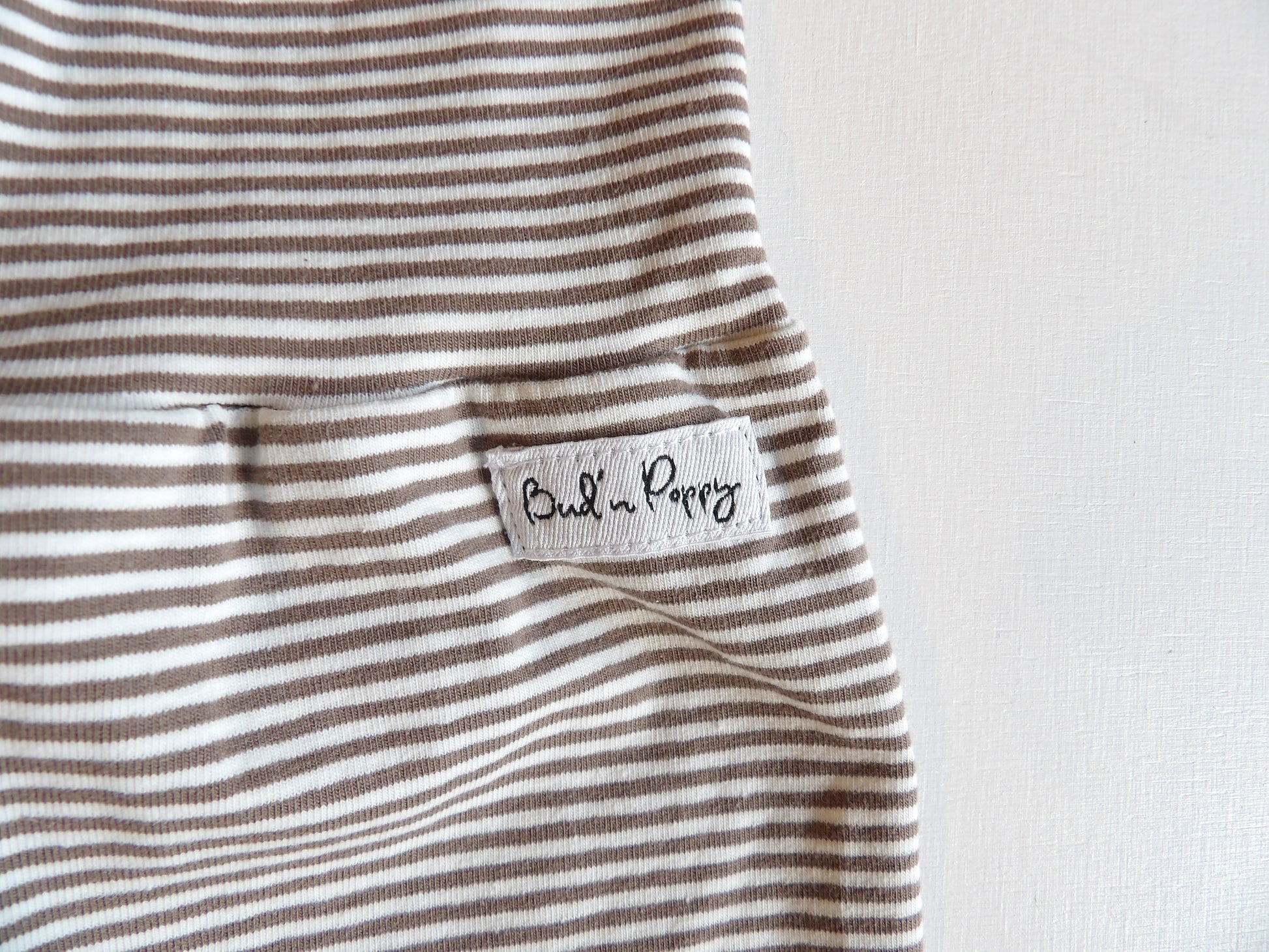 Bud’n Poppys växa-byxor är sydda i mjuk trikå som formar sig efter barnets rörelser och växer med barnet.