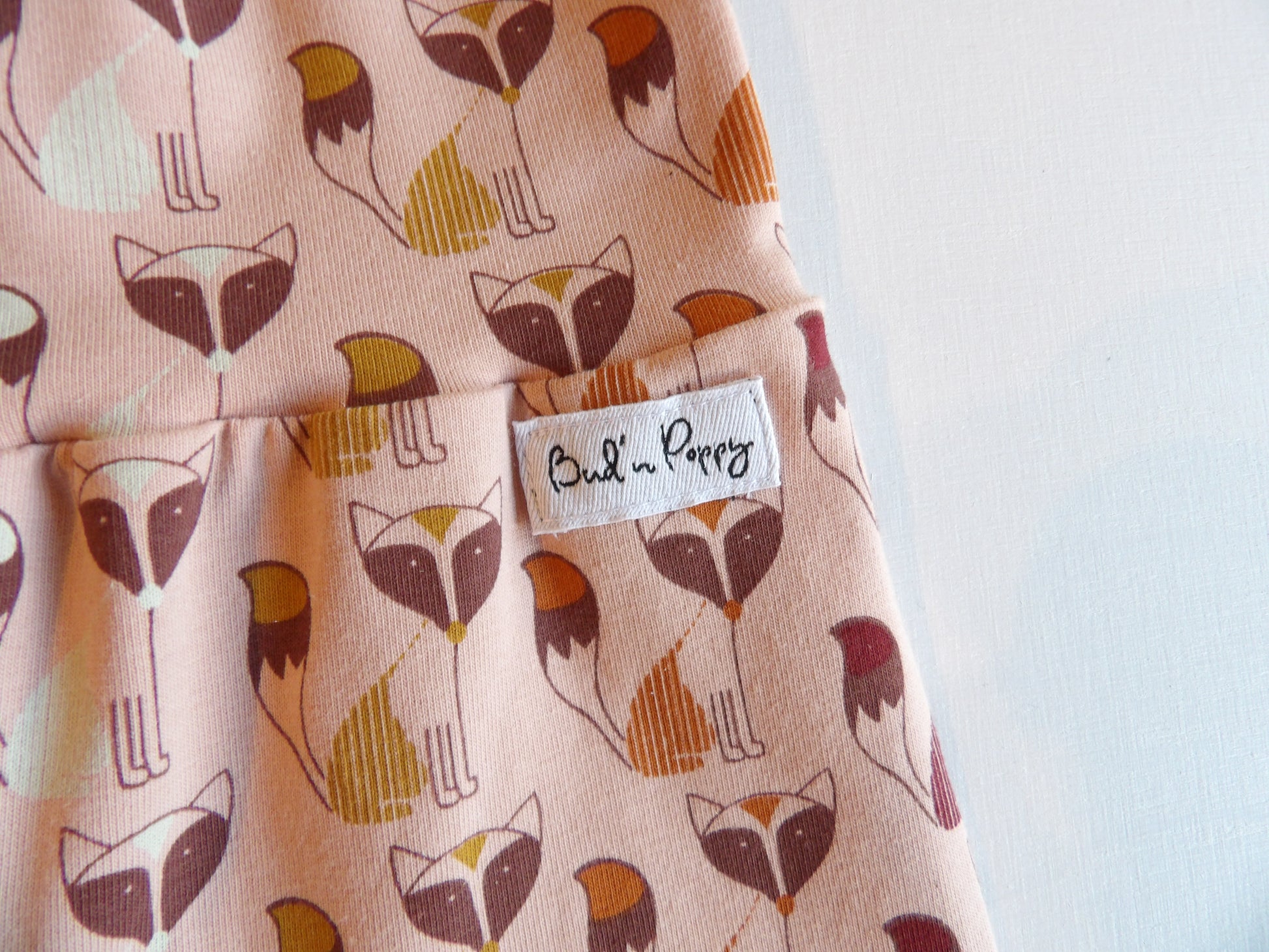 Bud’n Poppys växa-byxor är sydda i mjuk trikå som formar sig efter barnets rörelser och växer med barnet.